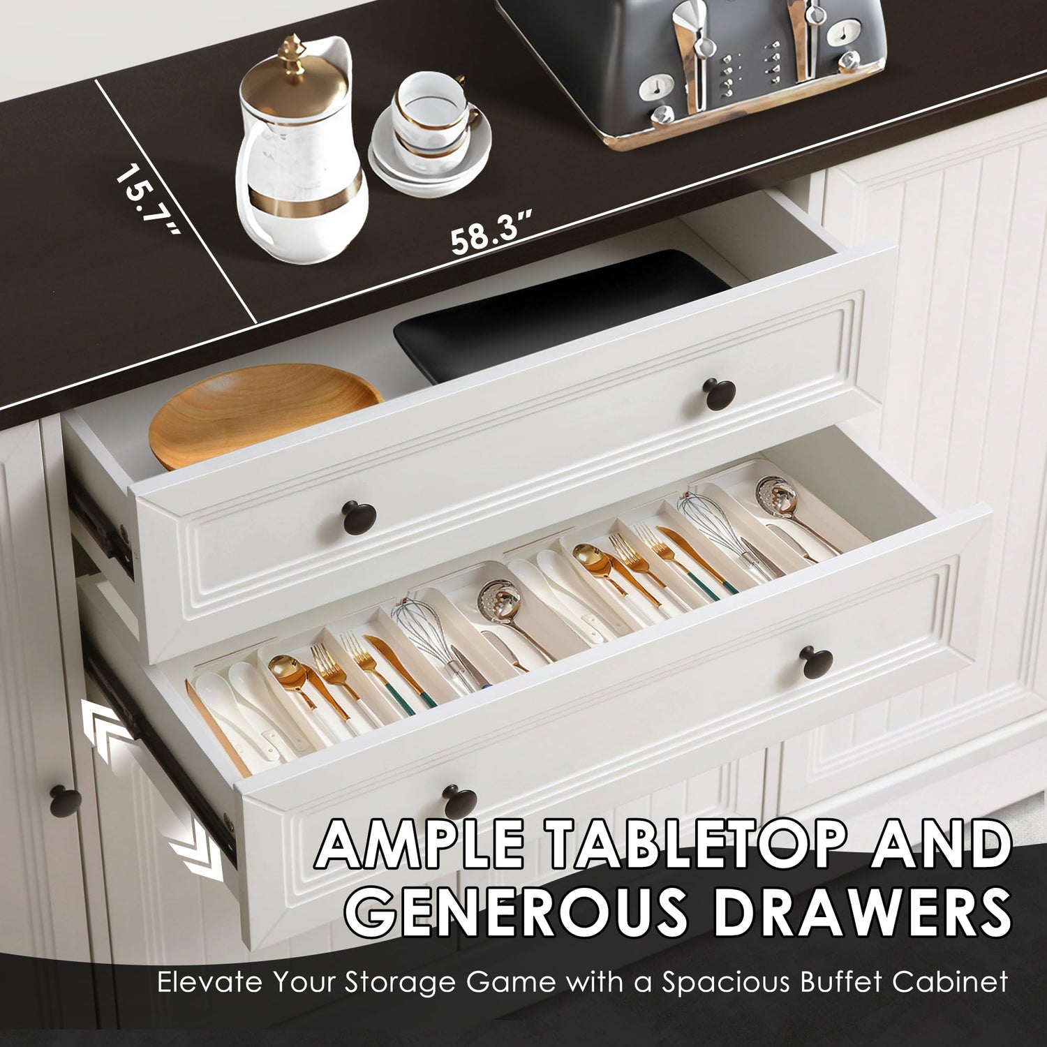 4. Our 58" buffet cabinet are made of high quality wood density boards