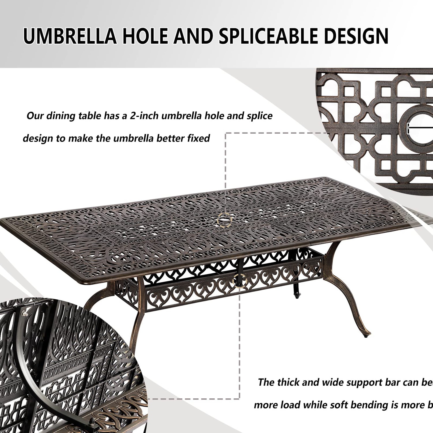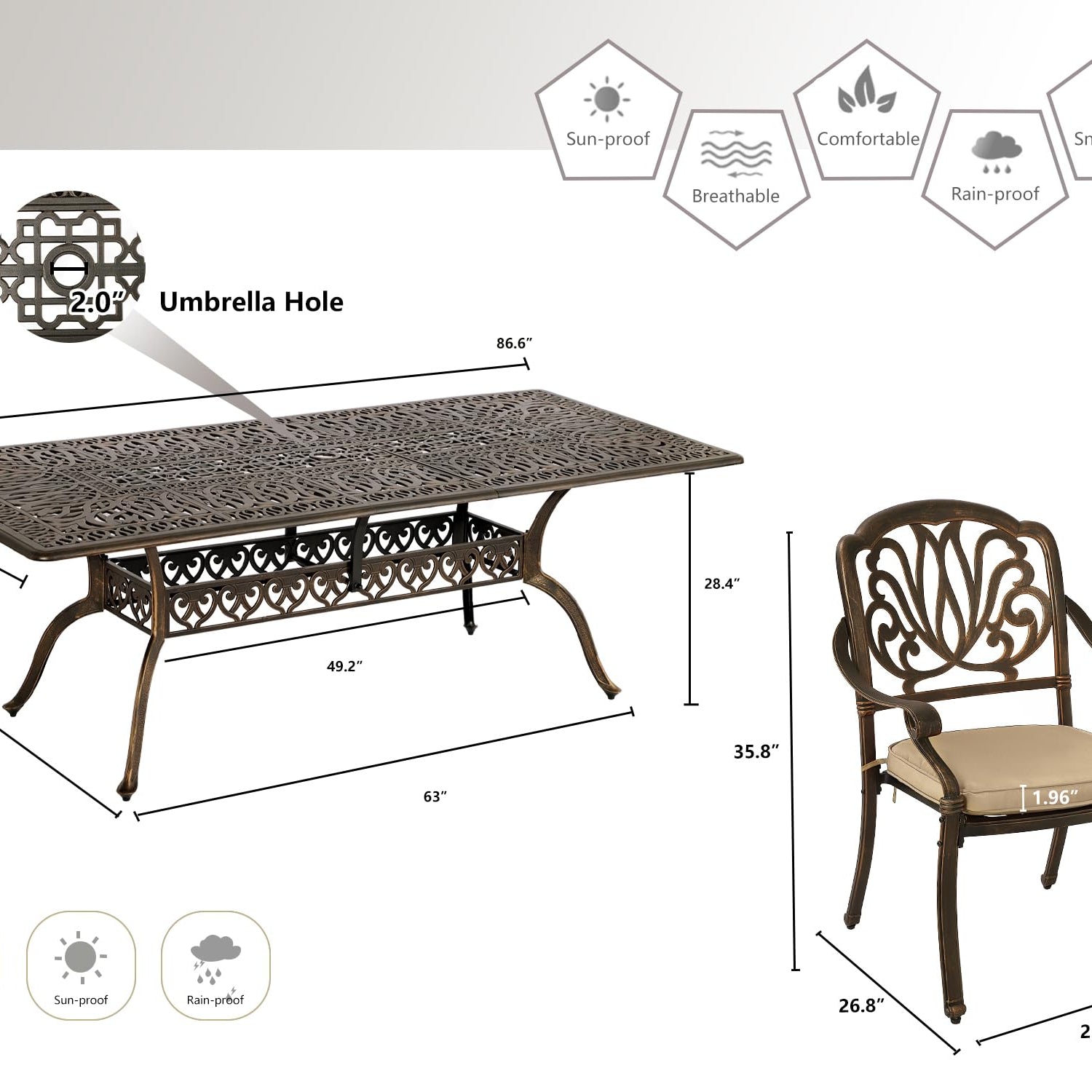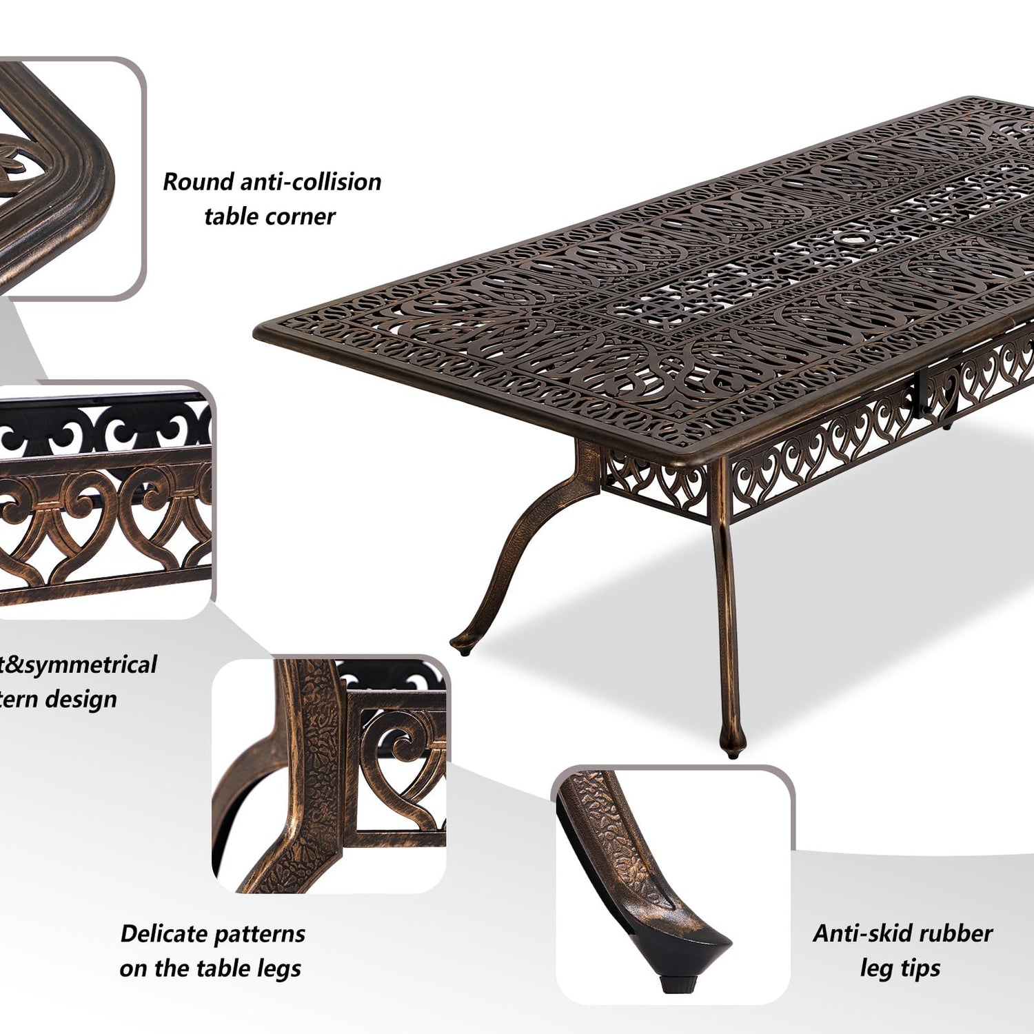 - Durable Cast Aluminum Construction: Our 9 piece cast aluminum patio dining set is built with a sturdy frame for long-lasting durability and weight capacity. This ensures that you can enjoy years of outdoor dining and relaxation without worry