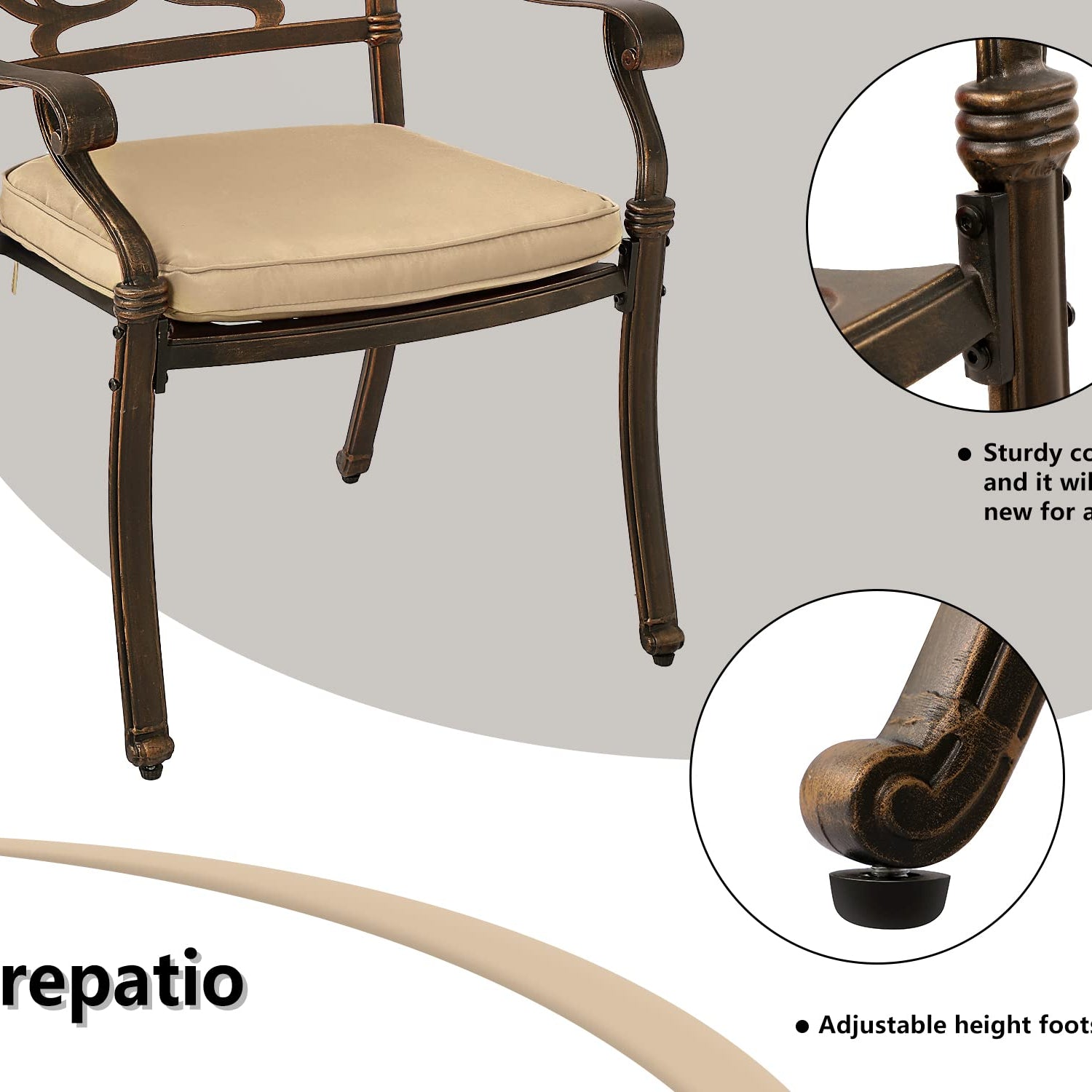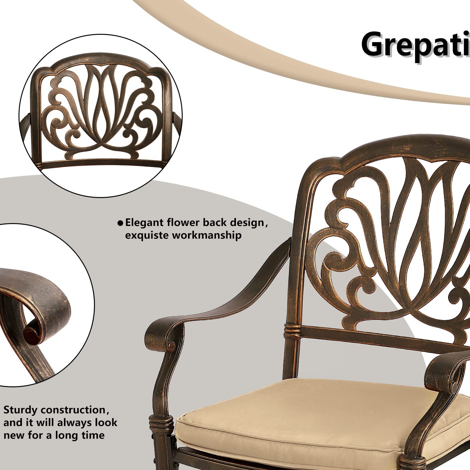 Grepatio 9 Piece Cast Aluminum Patio Furniture Set Outdoor Dining Set Bistro Furniture Set with 8 Armchairs and Dining Table, 8 Cushions for Backyard Garden Poolside (Khaki)