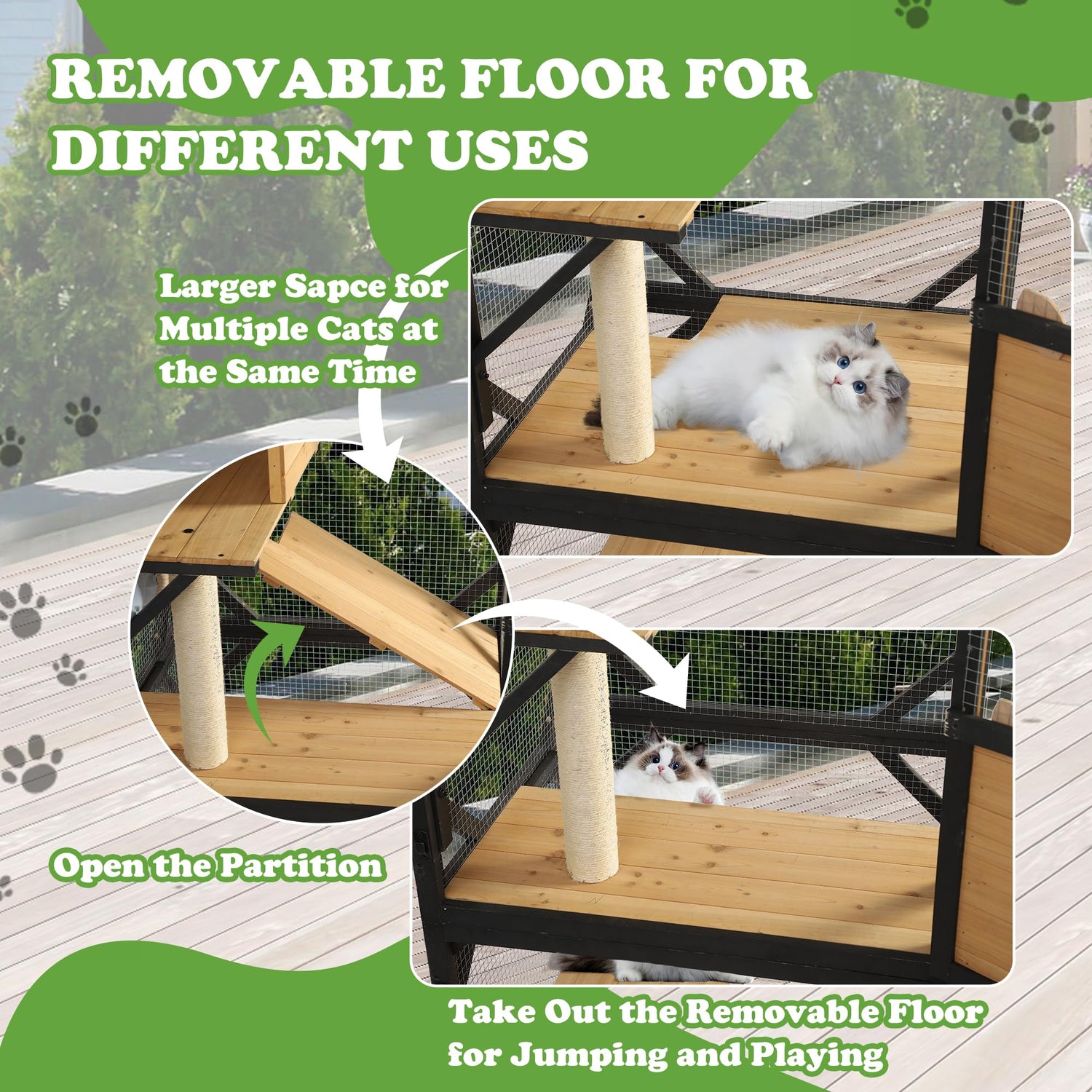 - Catio with Removable Floor: There is a removable wooden board in the center of our cat cage, if you have a lot of cats you can remove the board and open up more space for your kitties to live, our catio can accommodate up to 6 cats to play together