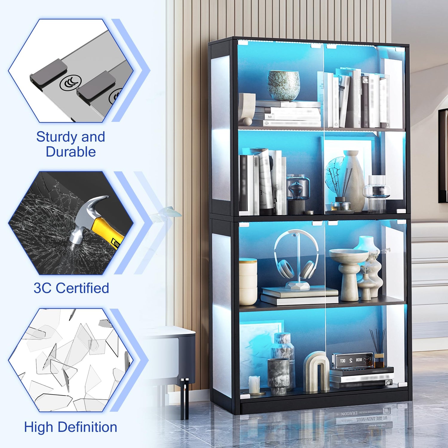 - Pop-Up Glass Doors: Our curio cabinet has a total of 4 glass doors, using the design of pressing open the door to maintain the stylish appearance of the display cabinet, while allowing your collection at a glance, fully display the beauty of the collection