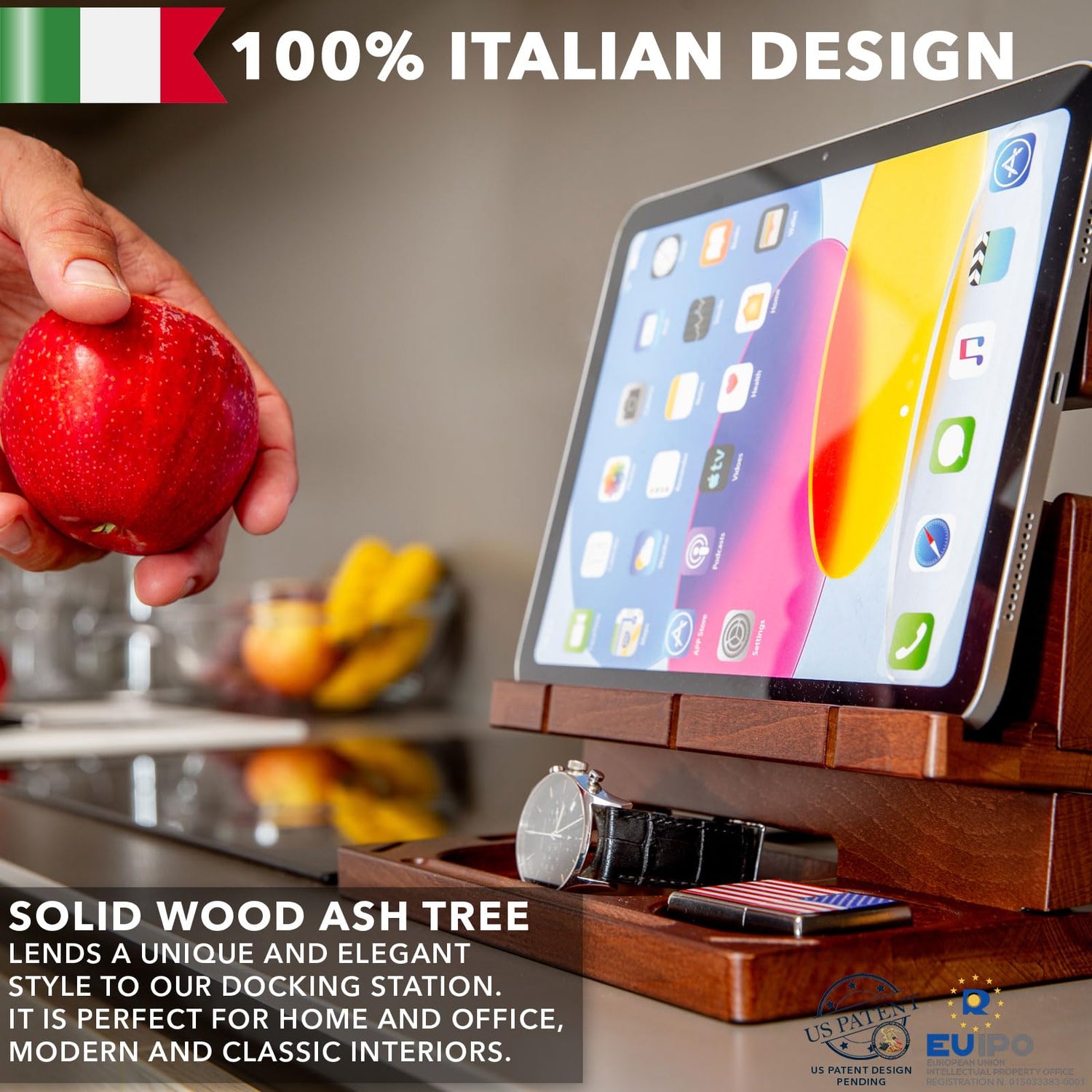 - STABLE & DURABLE. Crafted from top-quality solid Ash wood, this Italian-style nightstand organizer boasts remarkable sturdiness. The charging station organizer rests on a stable base that won't wiggle or wobble.