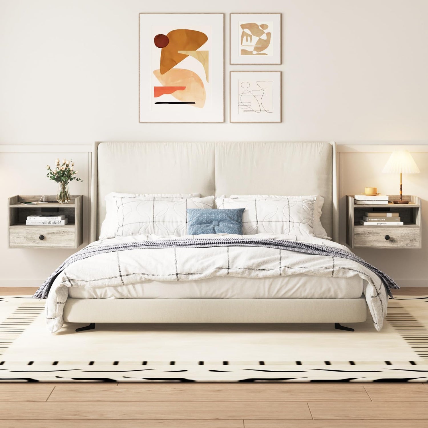 - ☘️With our bundle deal, you'll receive not just one but two floating bedside tables, perfect for a his and hers setup or to place on either side of a larger bed. And with their space-saving design, you'll have more room for other furniture and decor in your bedroom.