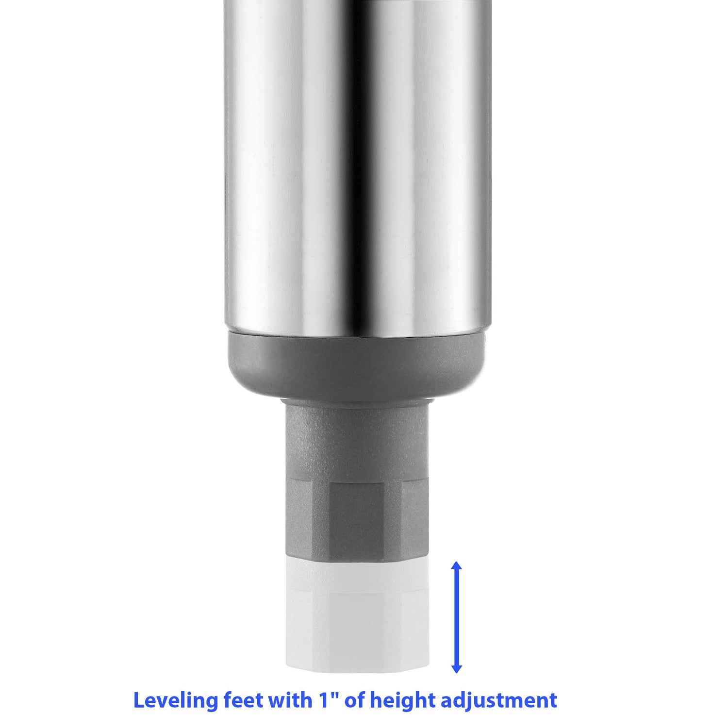 - Adjustable height, non-marring feet and 4 caster wheels: Adjustable bullet feet keep the stainless steel table sturdily in place, while protecting floors from denting and scratching. The feet adjust up to 1" to eliminate table wobble. A set of 4, non-marring caster wheels are also included. These wheels work on almost any surface and two of the wheels lock down to keep your table in place.