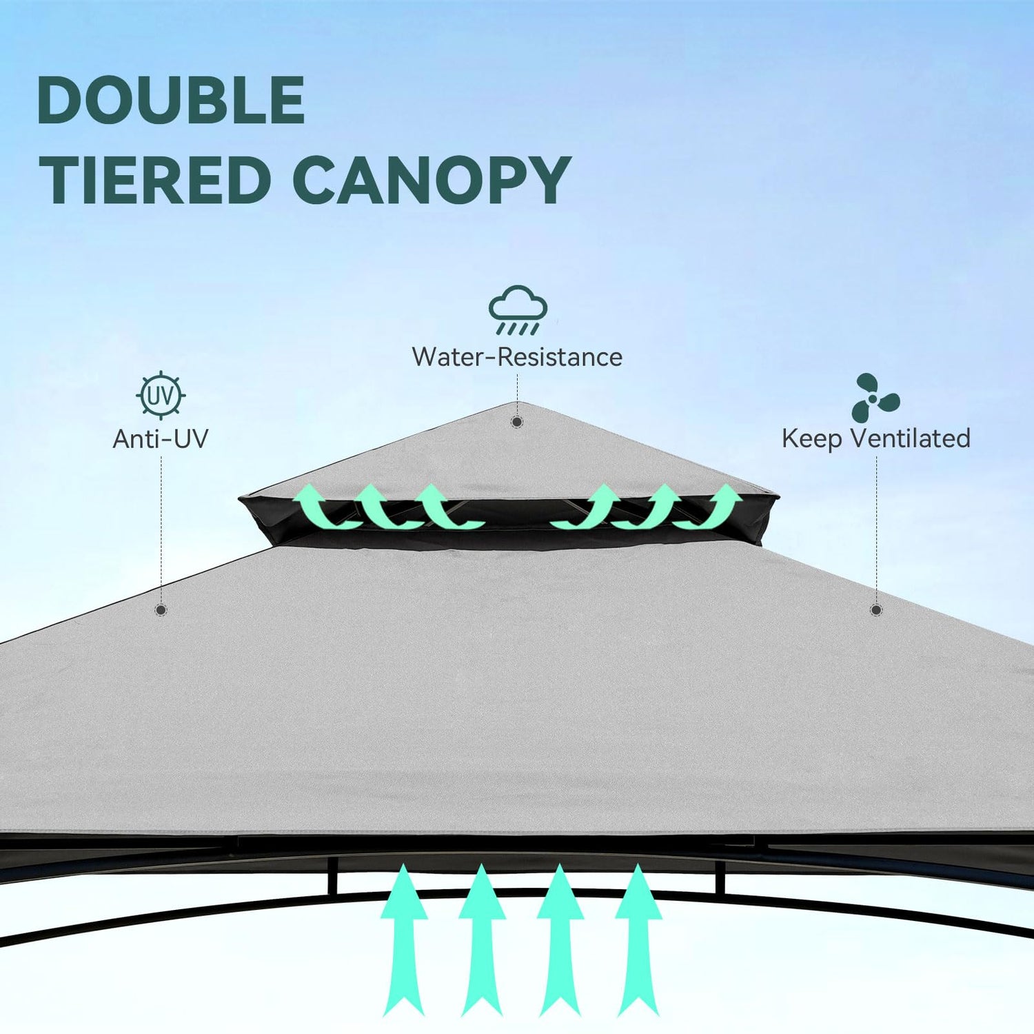 - 【Waterproof Design】Don't let rain or sunlight ruin your outdoor barbecue time - FUNG YARD outdoor grill gazebo has got you covered. Combines vented, double-tiered canopy design with plenty of UV protection, water resistant, and smoke ventilation while grilling.