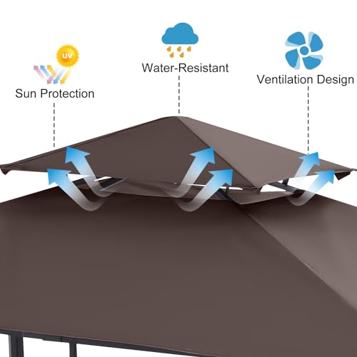 Grill Gazebo Canopy Replacement - ABCCANOPY 5x8 Double Tiered BBQ Canopy Top Cover, Outdoor Grill Tent Roof for #L-GG001PST-F (Brown)