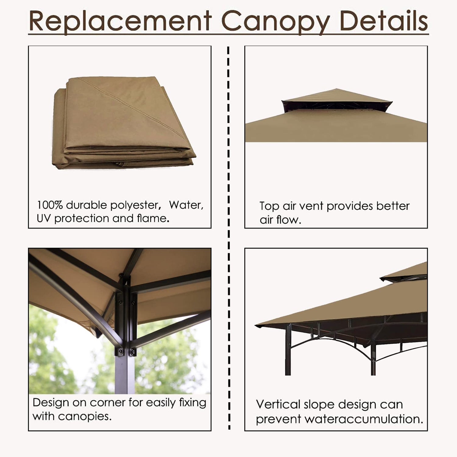 Grill Gazebo Replacement Canopy Roof – Hugline 5x8 Outdoor Grill Shelter Canopy Top Double Tiered BBQ Tent Cover Fit for Model L-GG001PST-F (Khaki)