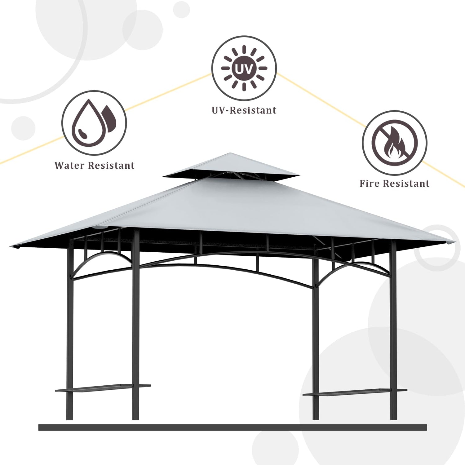 - Durable Material: The grill canopy roof is made of 100% polyester, water-resistant and UV-resistant that can effectively protect you from the sun. This durable material is highly malleable and prevents tearing. It won't blow away even on a windy day
