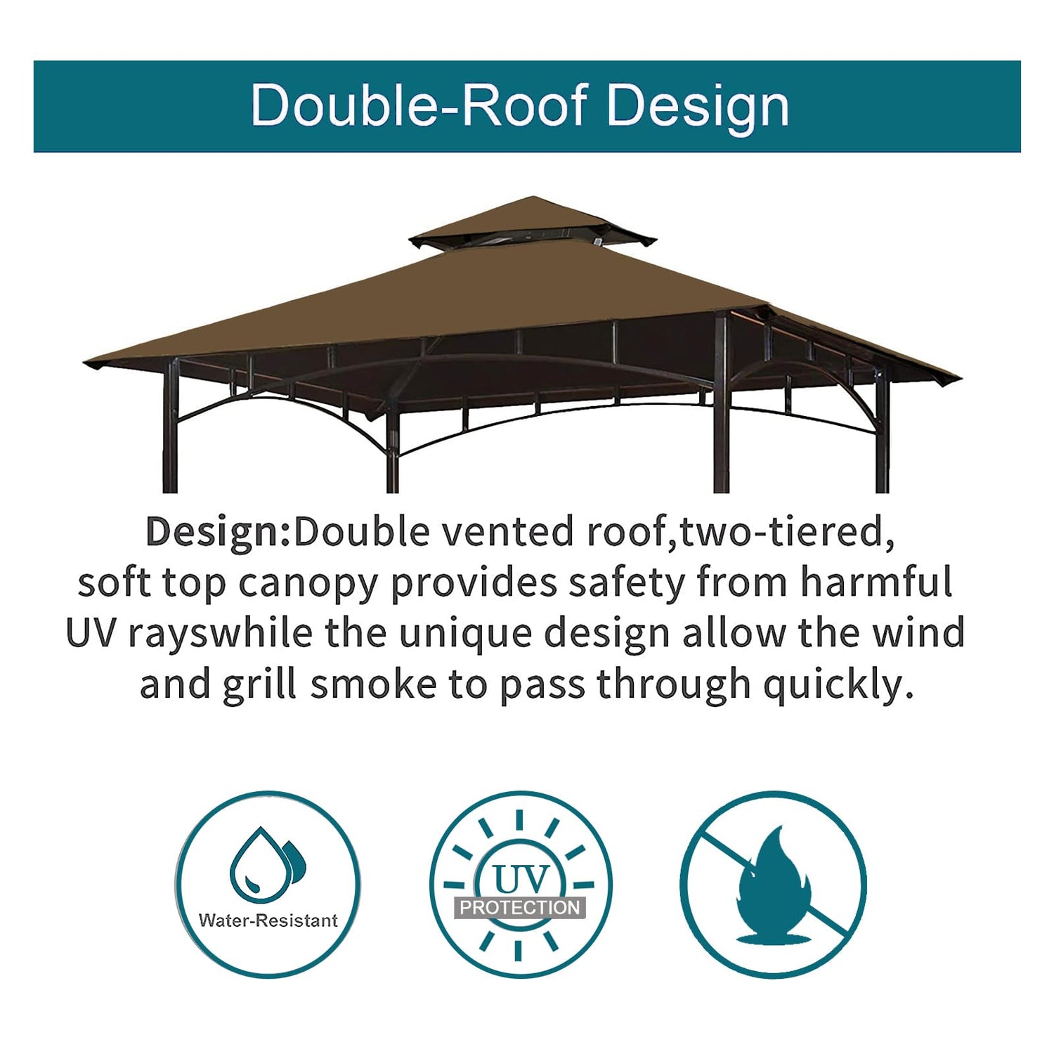 Grill Gazebo Replacement Canopy Top - Wonwon 5x8 Gazebo Roof Double Tiered Outdoor BBQ Roof Cover Grill Shelter Only Fit for Model L-GG001PST-F (Brown)