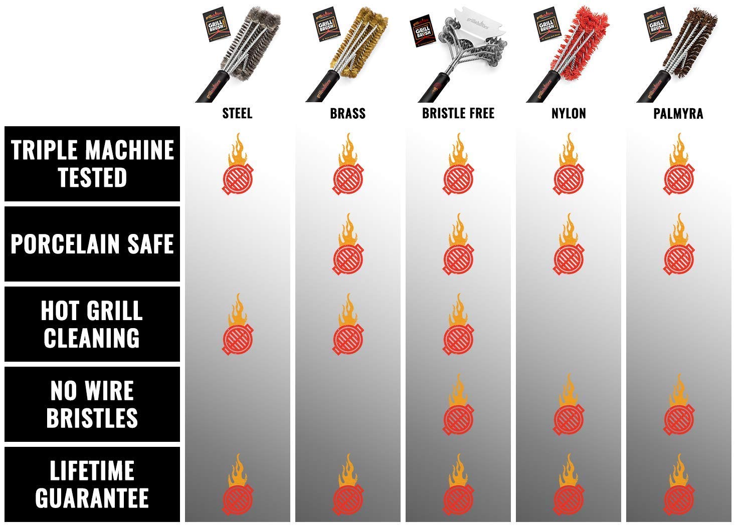 - So Fresh And So Clean - Let's be honest - everything tastes better on the grill. Give yourself the cleanest surface you deserve with our advanced three-in-one bristle free grill brush head. Say goodbye to that old conventional grill scraper and get your grill cleaner...SAFER.