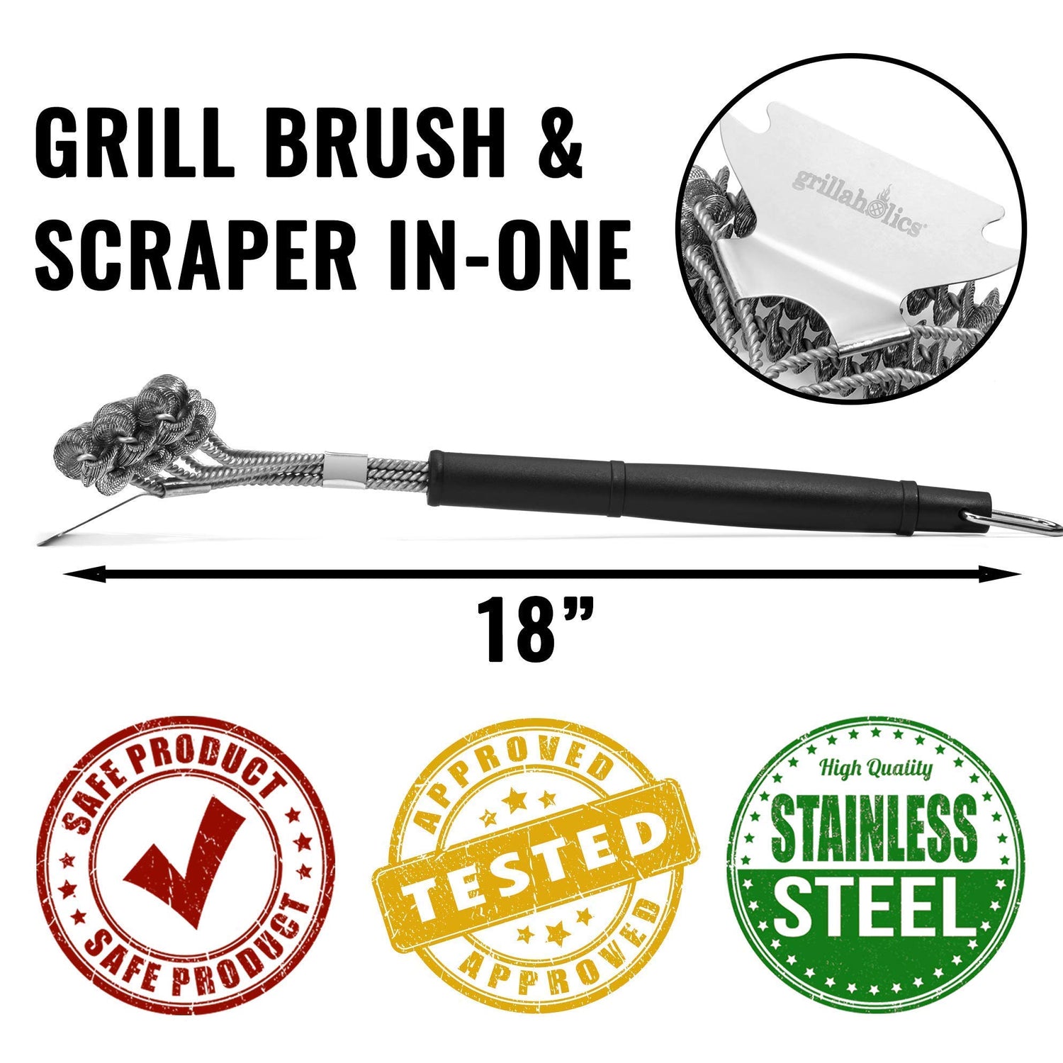 Grillaholics Grill Brush Bristle Free - Safe Grill Cleaning with No Wire Bristles - Professional Heavy Duty Stainless Steel Coils and Scraper - Lifetime Manufacturers Warranty