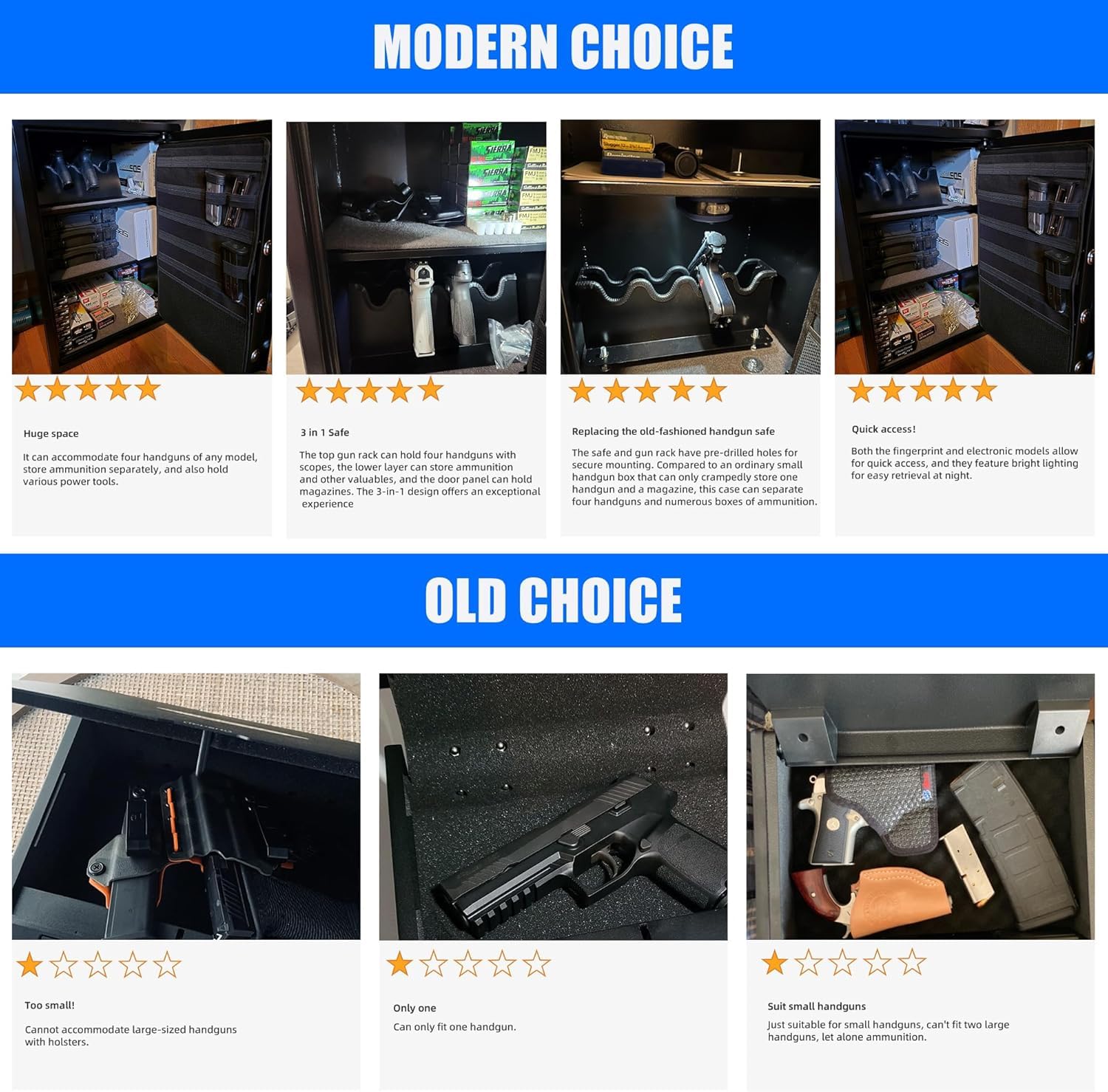 - ๐๐ฎ๐ง ๐๐๐๐ค & ๐๐ฎ๐ง ๐๐ซ๐ ๐๐ง๐ข๐ณ๐๐ซ: No fingerprint can open the gun safe until it is set. The biometric gun safe comes with a gun rack and a gun organizer for car keys, flashlights, multiple magazines, passports, and more
