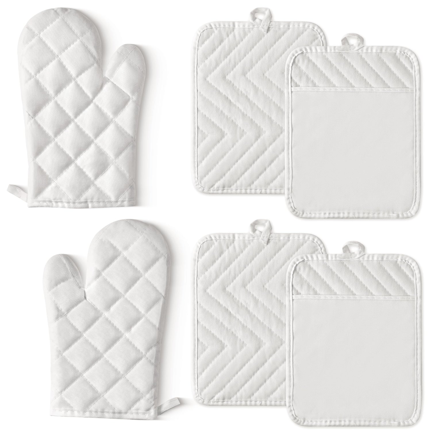 - Great Value Set: This package contains 2 white oven mitts and 4 white pot holders. The style is simple and classic, it will meet your daily kitchen needs.