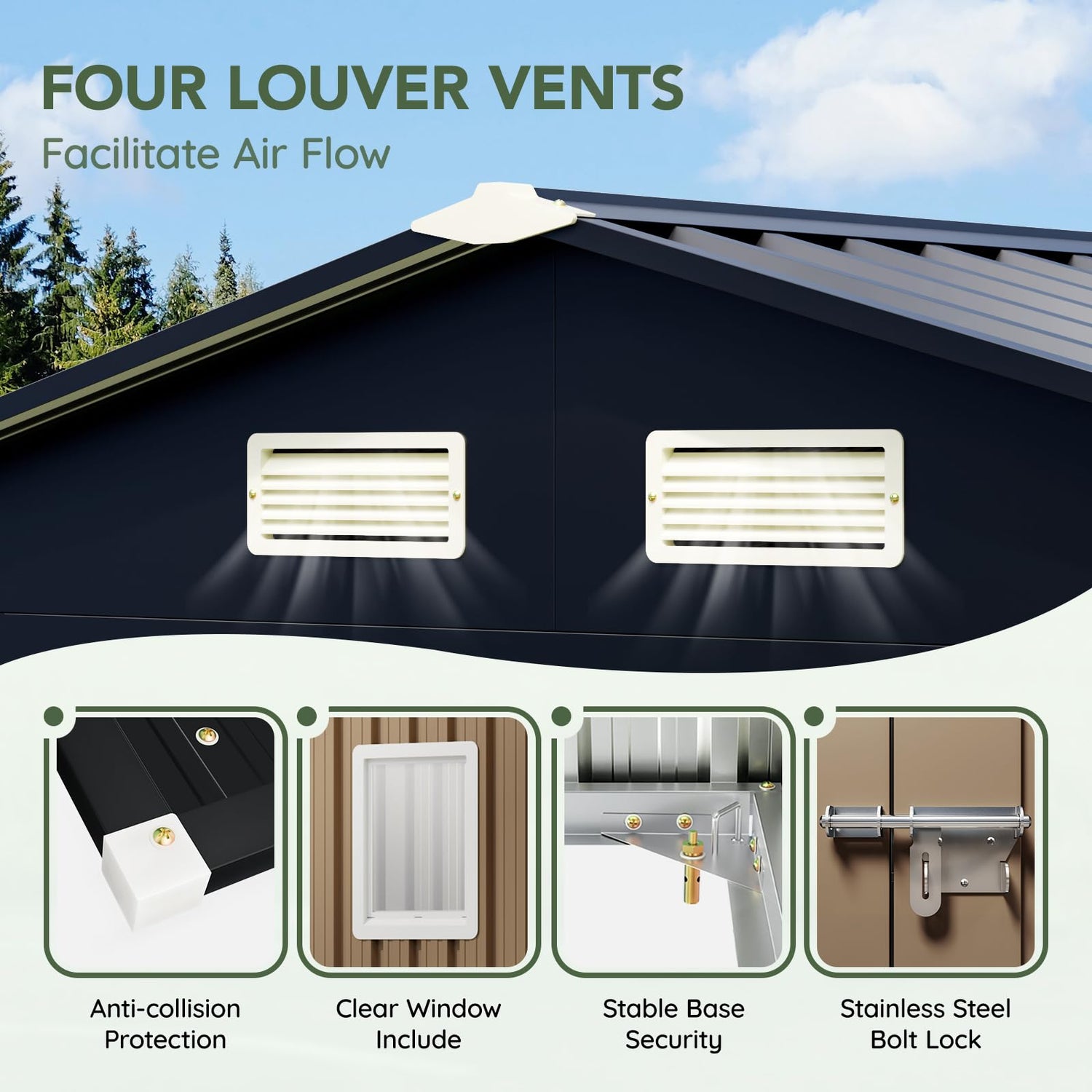 - Heavy-Duty Galvanized Steel Panels – Weather-resistant material protects against rust, corrosion, and UV damage, ensuring long-term use.