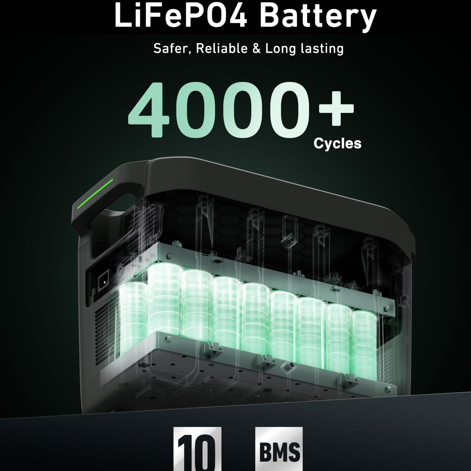 - Long-lasting & Safe Battery: Infinity 2000 battery generator utilizes LifeP04 batteries, offering over 4000 cycles for 10 years—six times more cycles than the industry average, resulting in greater cost-efficiency. Additionally,integrated with a Battery Management System (BMS), it delivers comprehensive protection against over/low temperature, voltage fluctuations, short circuits, and overloads, ensuring a durable and secure user experience.
