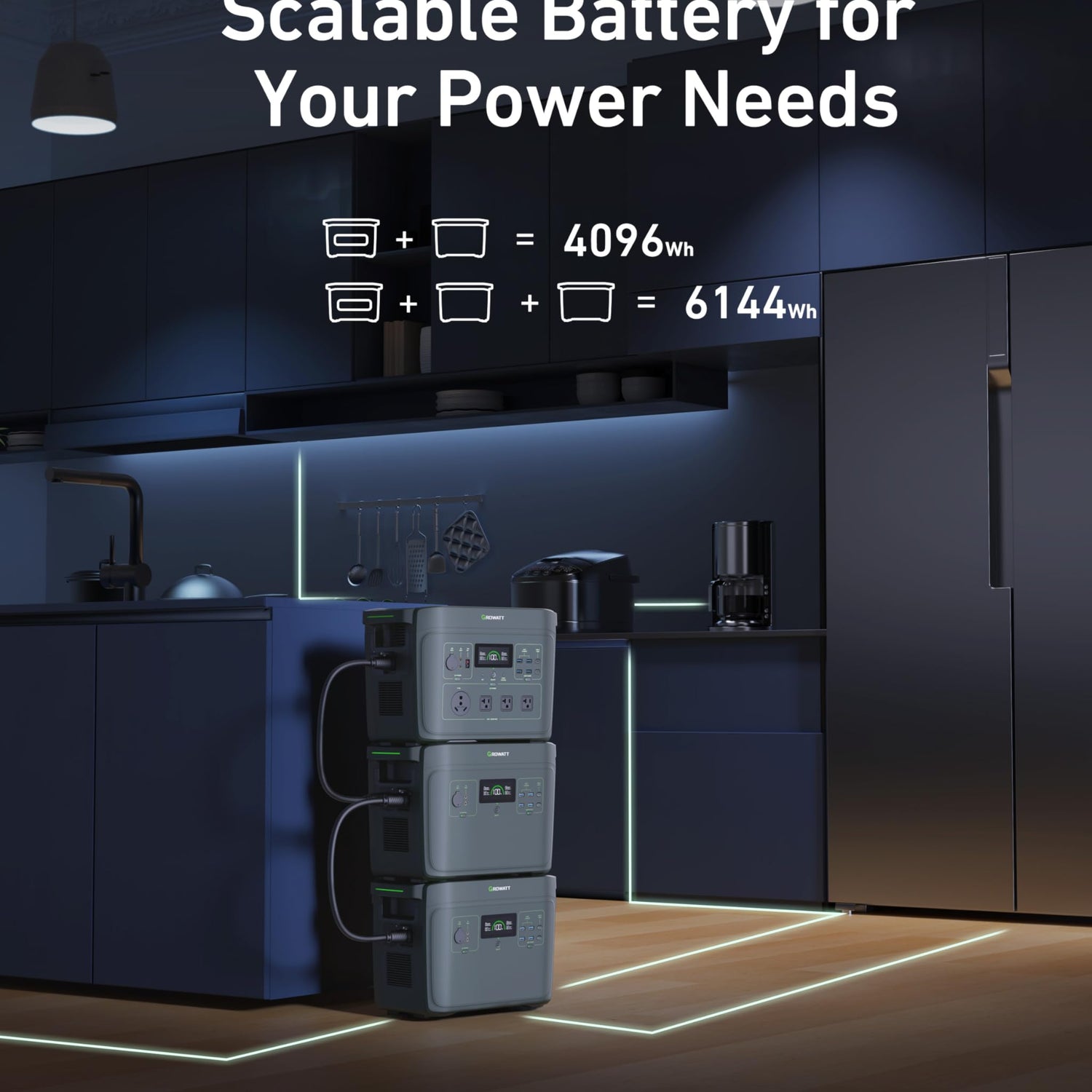 - Expandable Capacity: Boasting a substantial 2048Wh capacity, the electric generator supports up to 2 add-on extra battery packs at a time, expanding from 2kWh to a mighty 6kWh.With limitless power possibilities, it serves as the ideal solution for 1-3 days of home backup power, off-grid living, road trips, photography, and a wide array of outdoor activities.