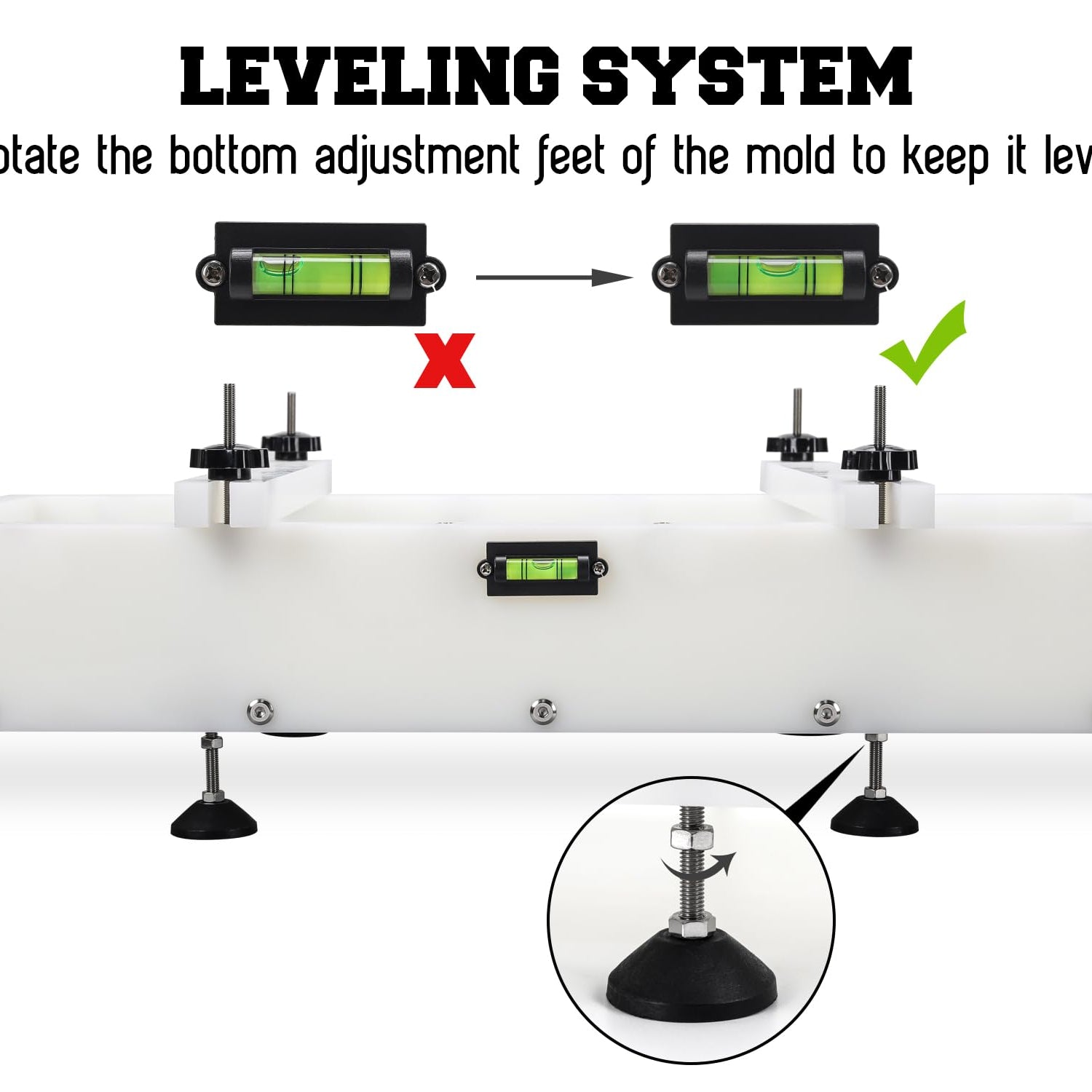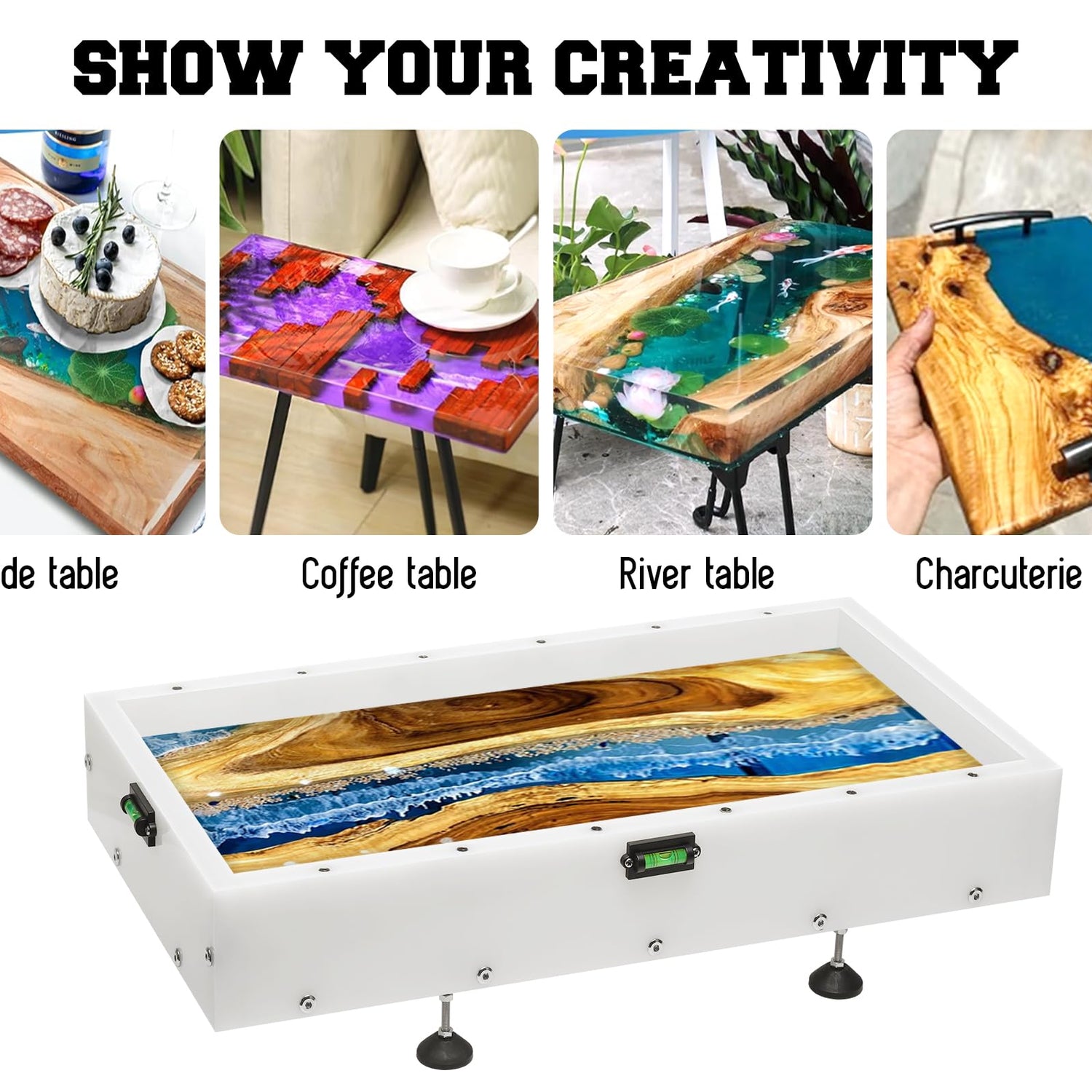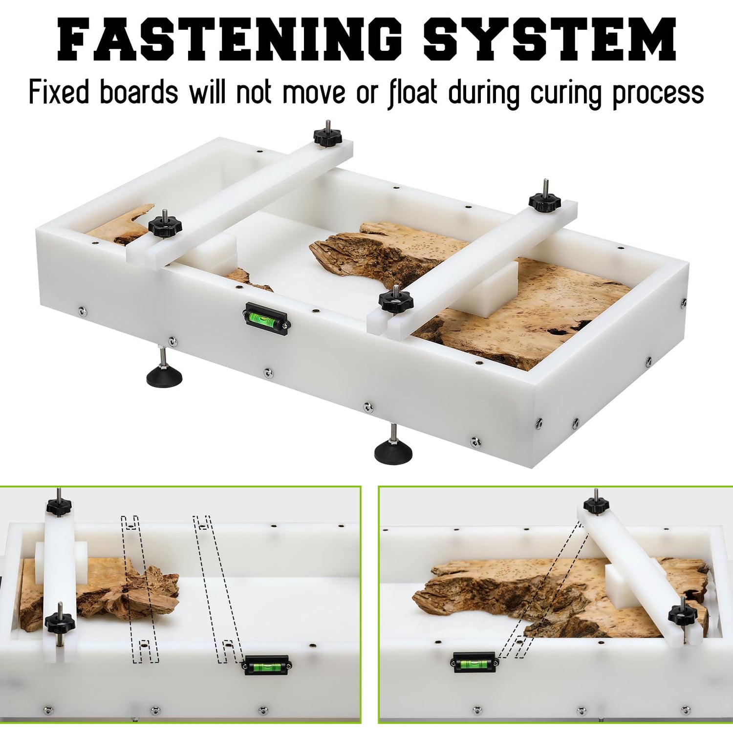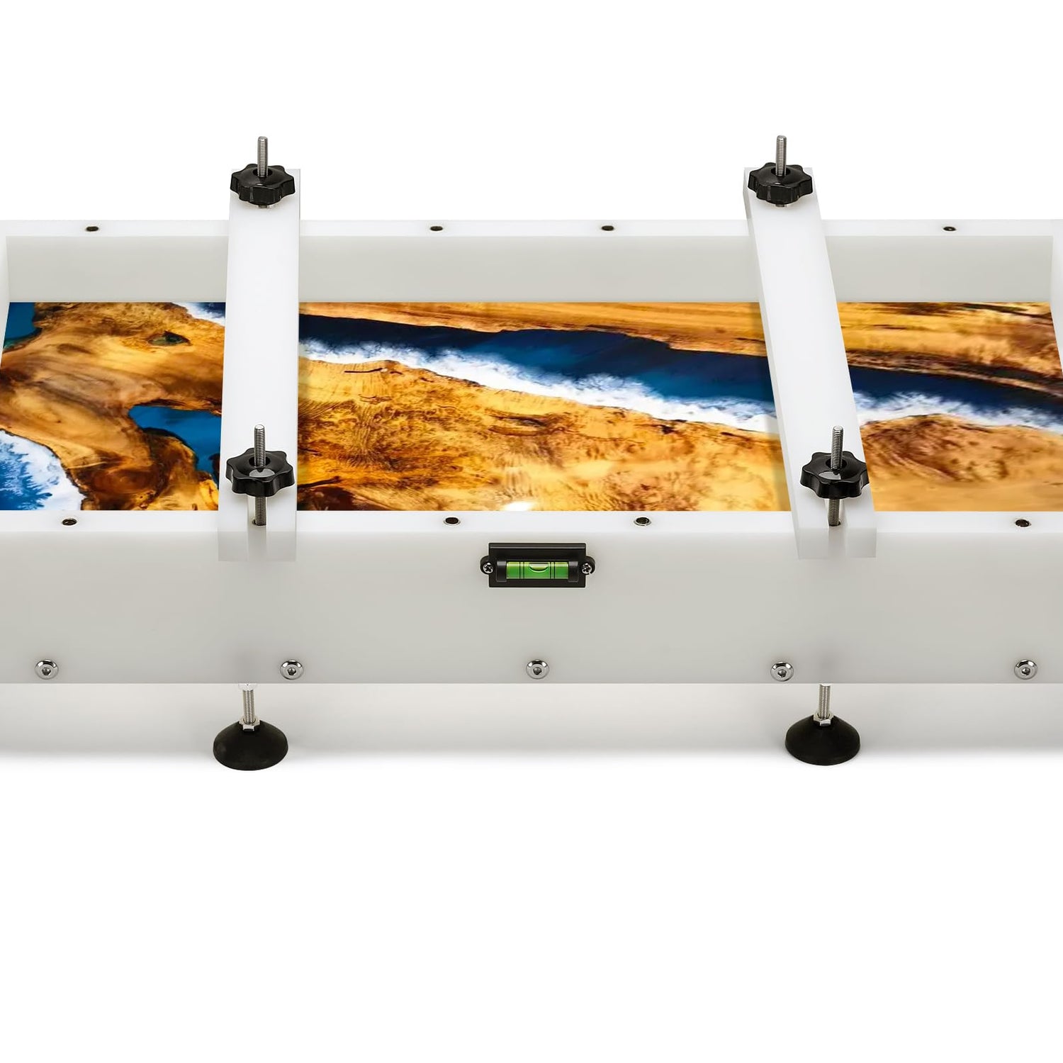 - LEVELING AND FASTENING SYSTEM - This resin mold features 2 levels and 4 adjustable feets for real-time level monitoring and adjustment, 2 adjustable pressure bars and 4 clamping blocks to easily secure the wood blank without the need for additional fixing tools. Whether you are making cutting boards, trays, river tables or coffee tables, our resin table molds can help you better complete various projects.
