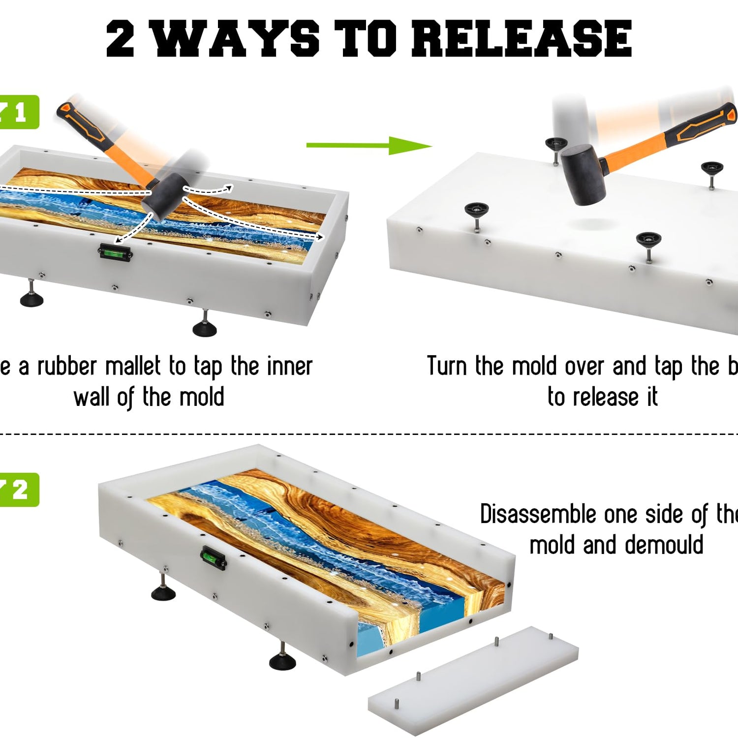 - EASY DEMOULDING - Since this large epoxy resin mold is made of UPE material, which has self-lubricating properties and the resin does not easily adhere to its surface. Easily release by tapping it with a rubber mallet or taking apart the short sides of the mold. Easily handle various demoulding challenges.