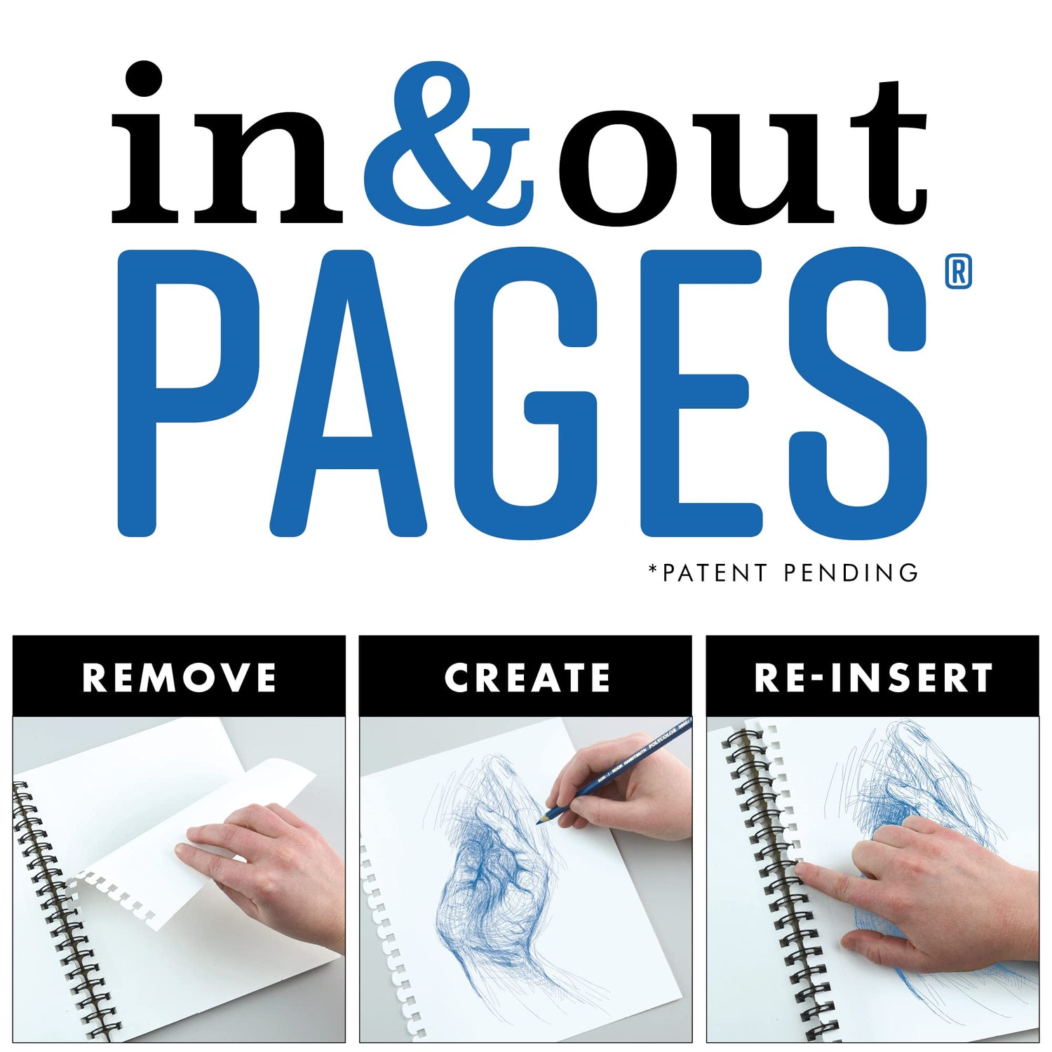 - Dual loop, wire-bound construction features “In & Out” pages (patent pending) that allow you to remove sheets from the pad for painting, reworking, scanning, and more