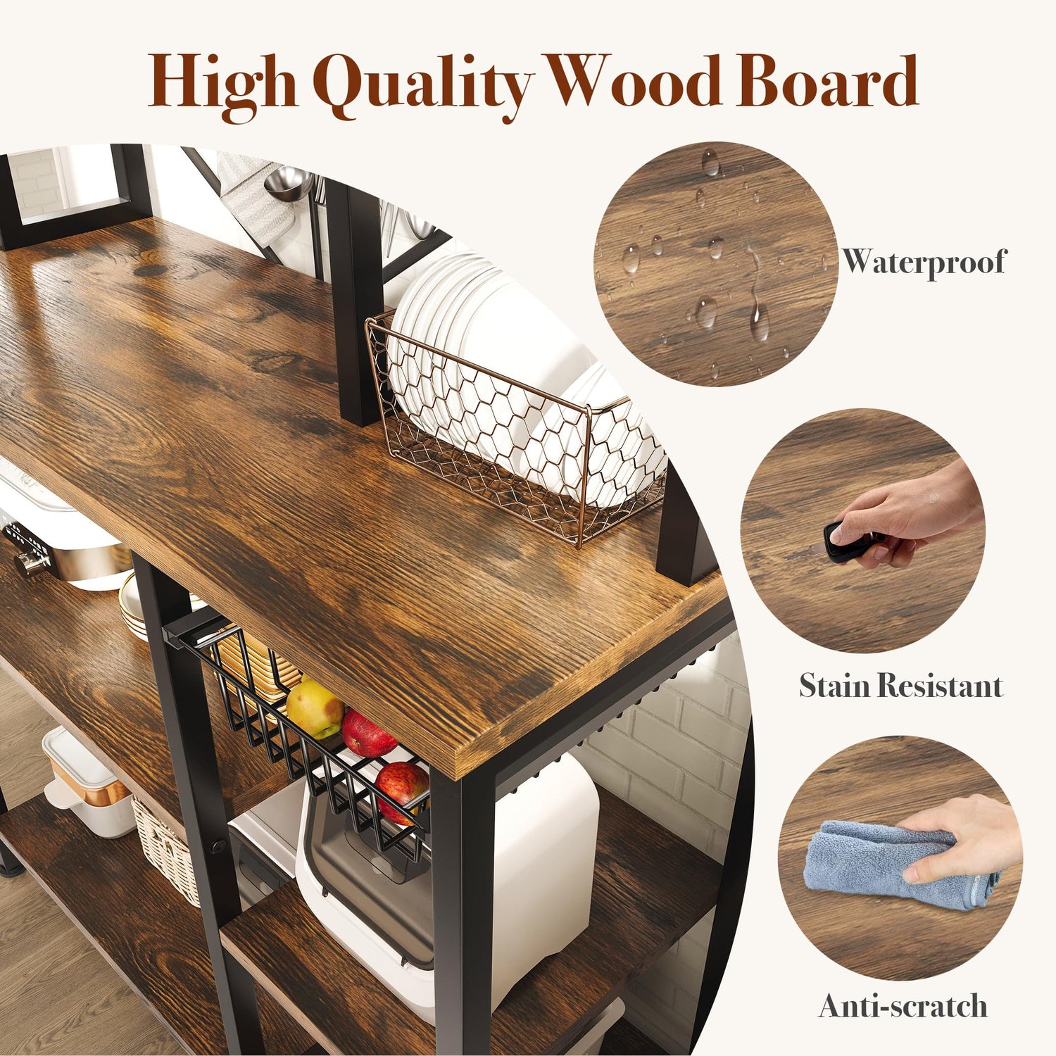 - Stable and Safe: Crafted from sturdy wood and a durable metal frame, the kitchen shelves offer long-lasting strength. Each shelf holds up to 66 lbs, while adjustable feet and anti-tip devices provide added stability and safety on any floor