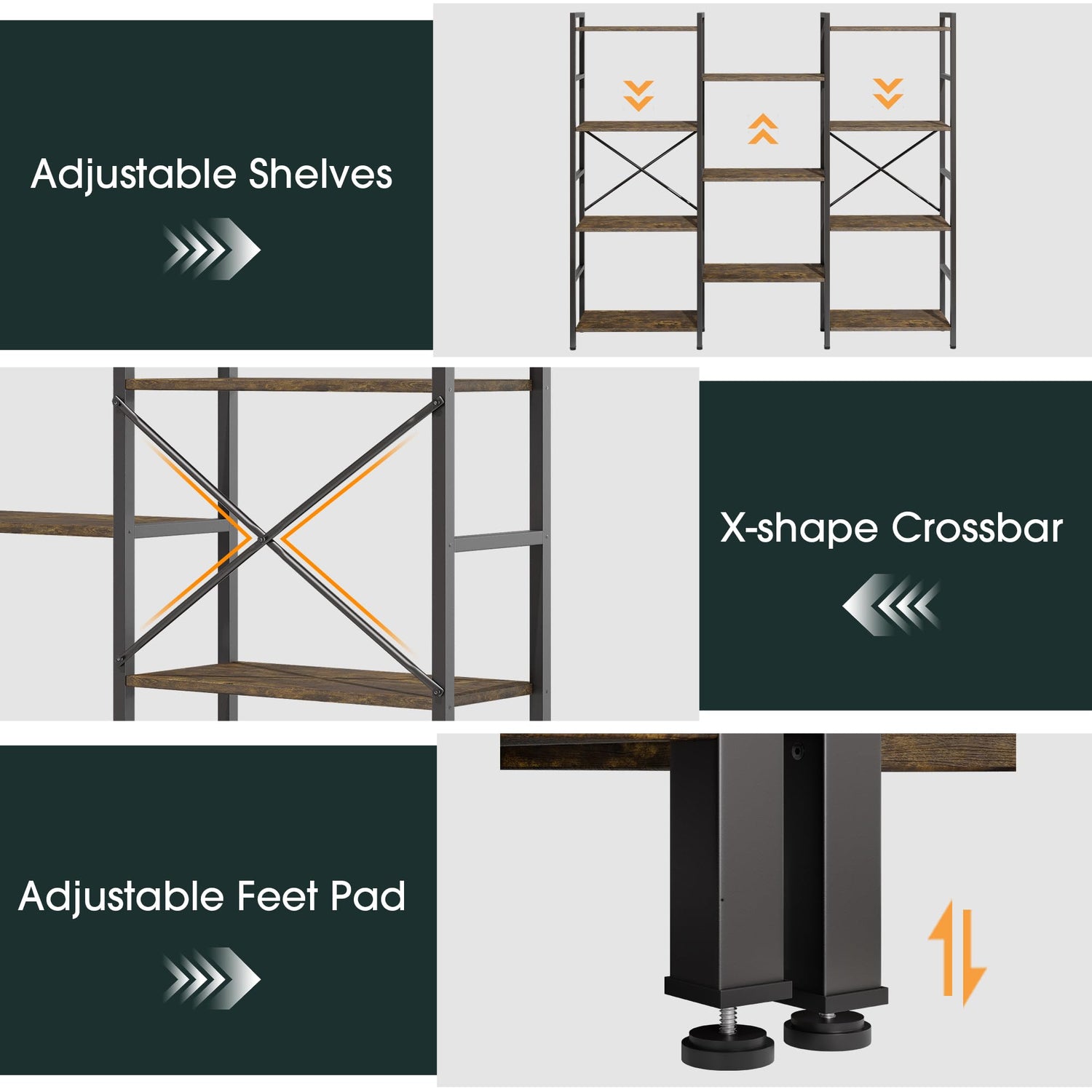 - Multiple Use: This 4 tier bookshelf blends effortlessly with any decor, making it a perfect fit for living rooms, bedrooms, studies, hallways, storage rooms, garages, and offices. Designed for functionality and style, it helps you organize and elevate any space with ease