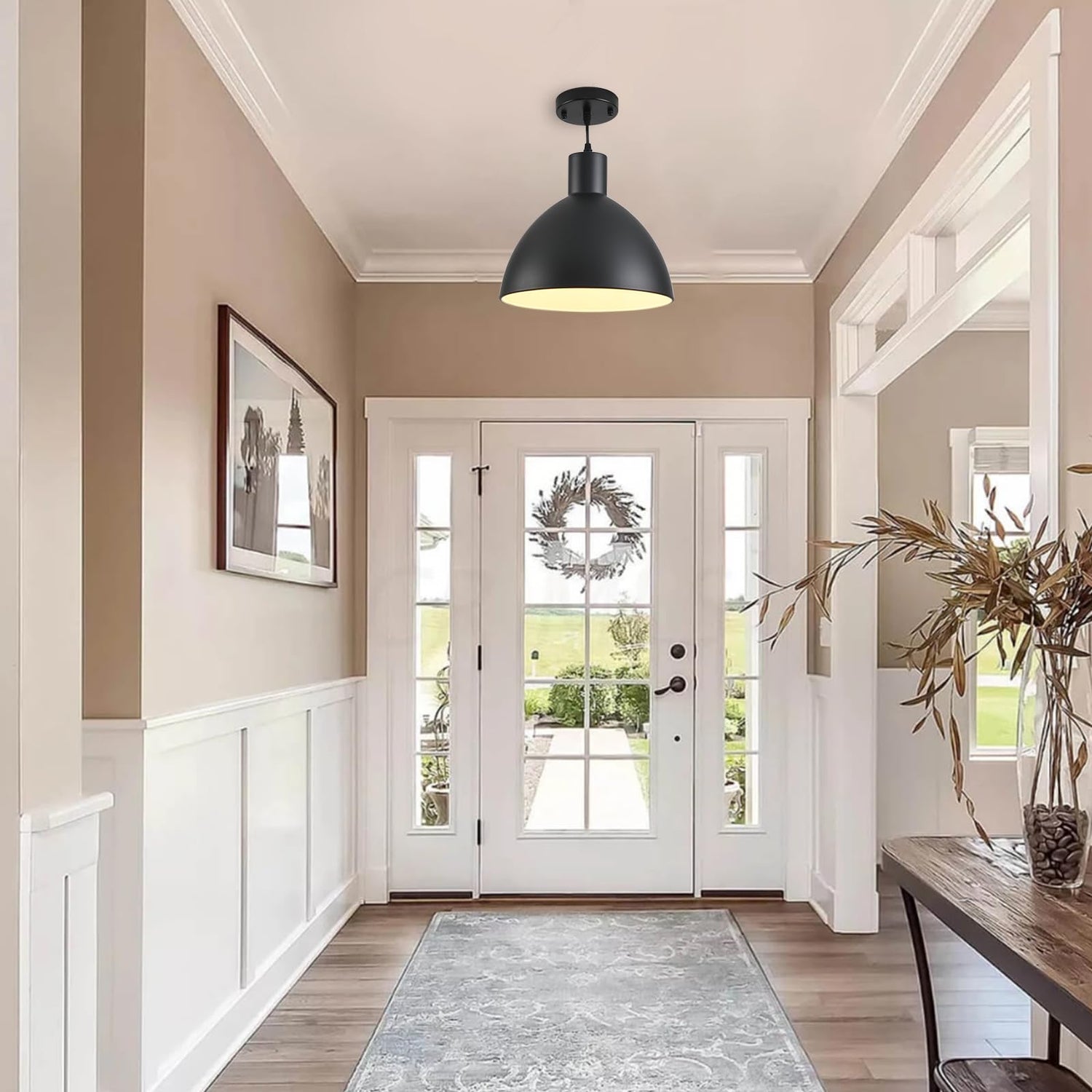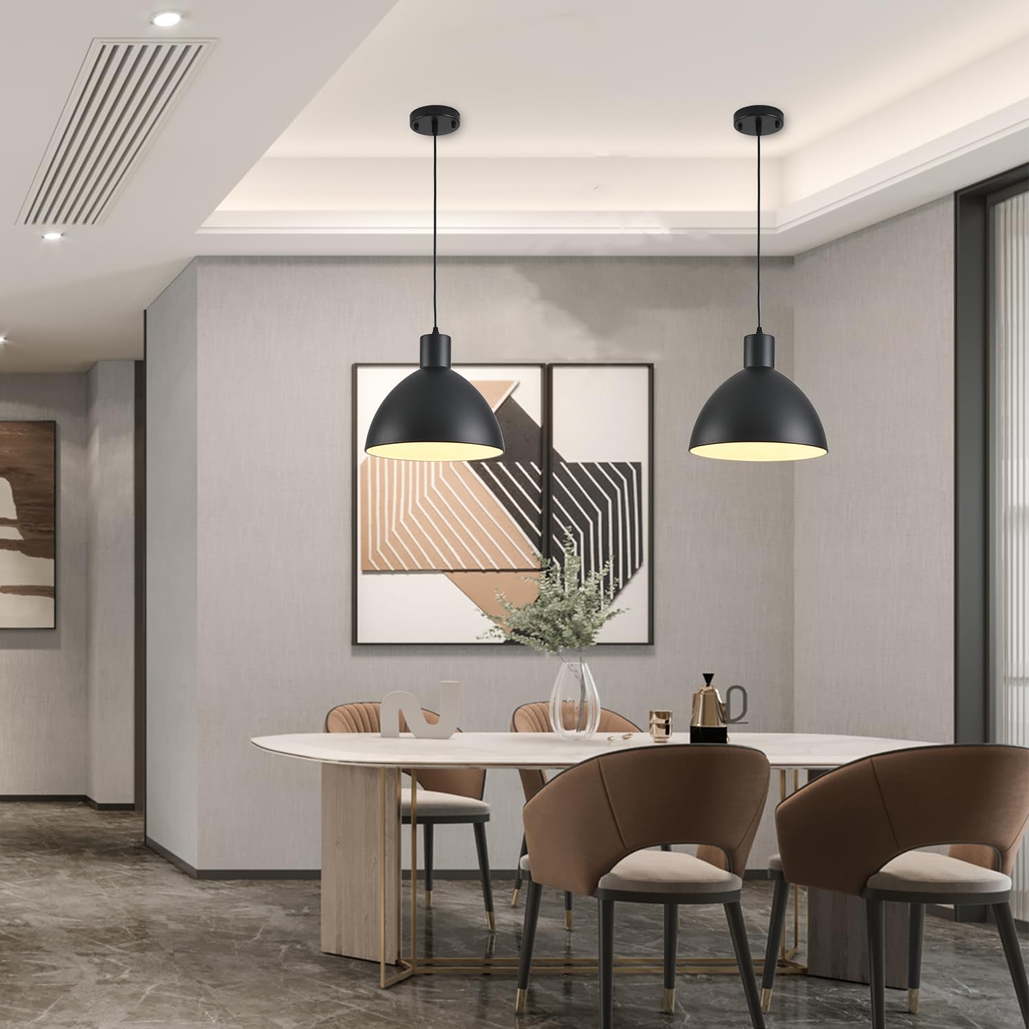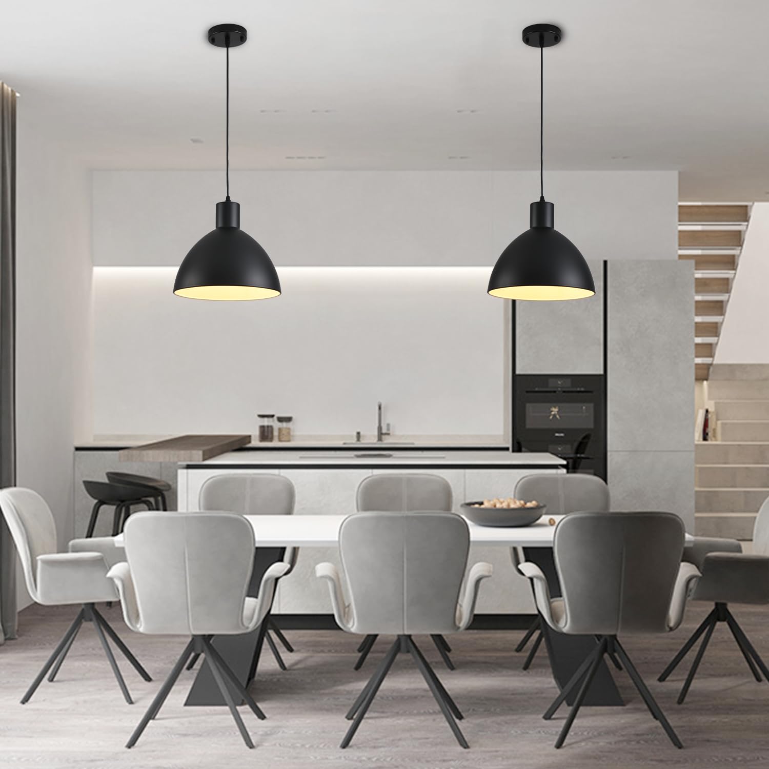 - 【Farmhouse & Modern Design】This kitchen hanging lights has a black exterior and a matte white interior, formed in one piece, with an iron cover thickness of 1.0mm.Modern black pendent light design features a black dome shade elegant to any space. The matte finish create an impressive, stylish look that easily blends into a variety of interior styles.