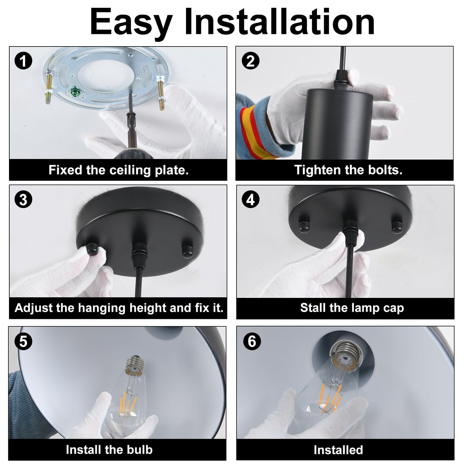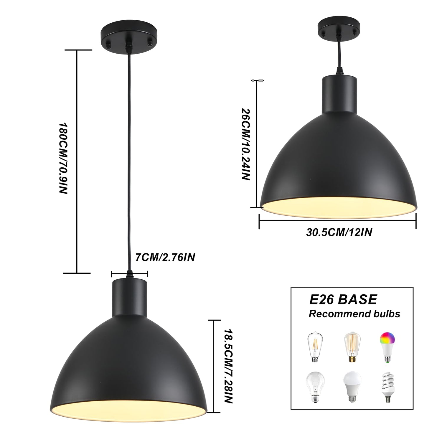 - 【Adjustable Cables】Dome pendant light equipped with 70.86in cable, length can be adjusted according to your preferences and design, could hang higher or lower as you want, which illuminates your entire space.E26 US standard lamp sockets, compatible with a variety of bulbs (Max: 60W), such as incandescent, LED, CFL, and halogen bulbs (Bulb Not Included).