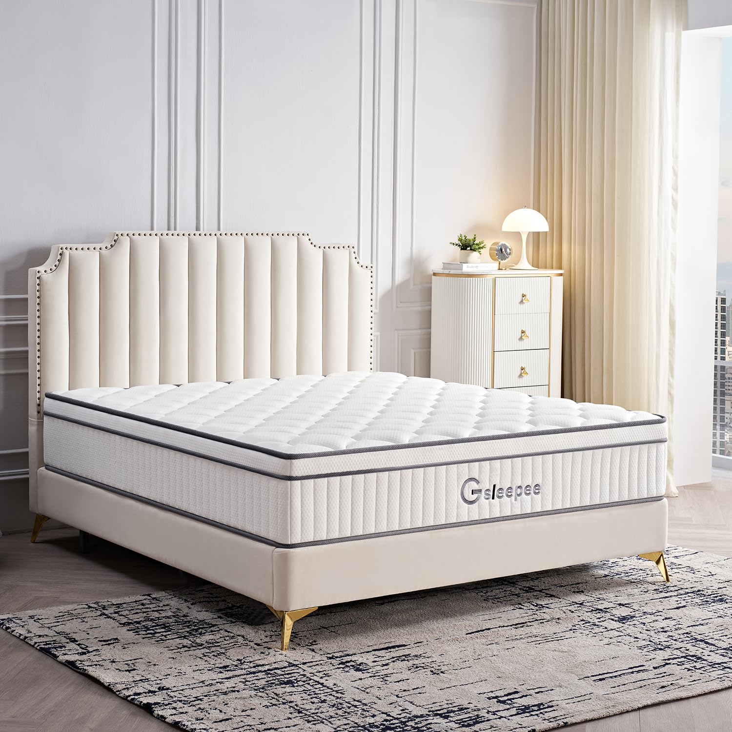 - Experience Superior Comfort and Support: Our mattress king features a unique blend of gel memory foam and individual innerspring coils, providing medium-firm support and exceptional pressure relief. This combination ensures optimal spinal alignment and comfort, making it perfect for a restful night's sleep. The memory foam conforms to your body's shape, offering personalized support for all sleeping positions.