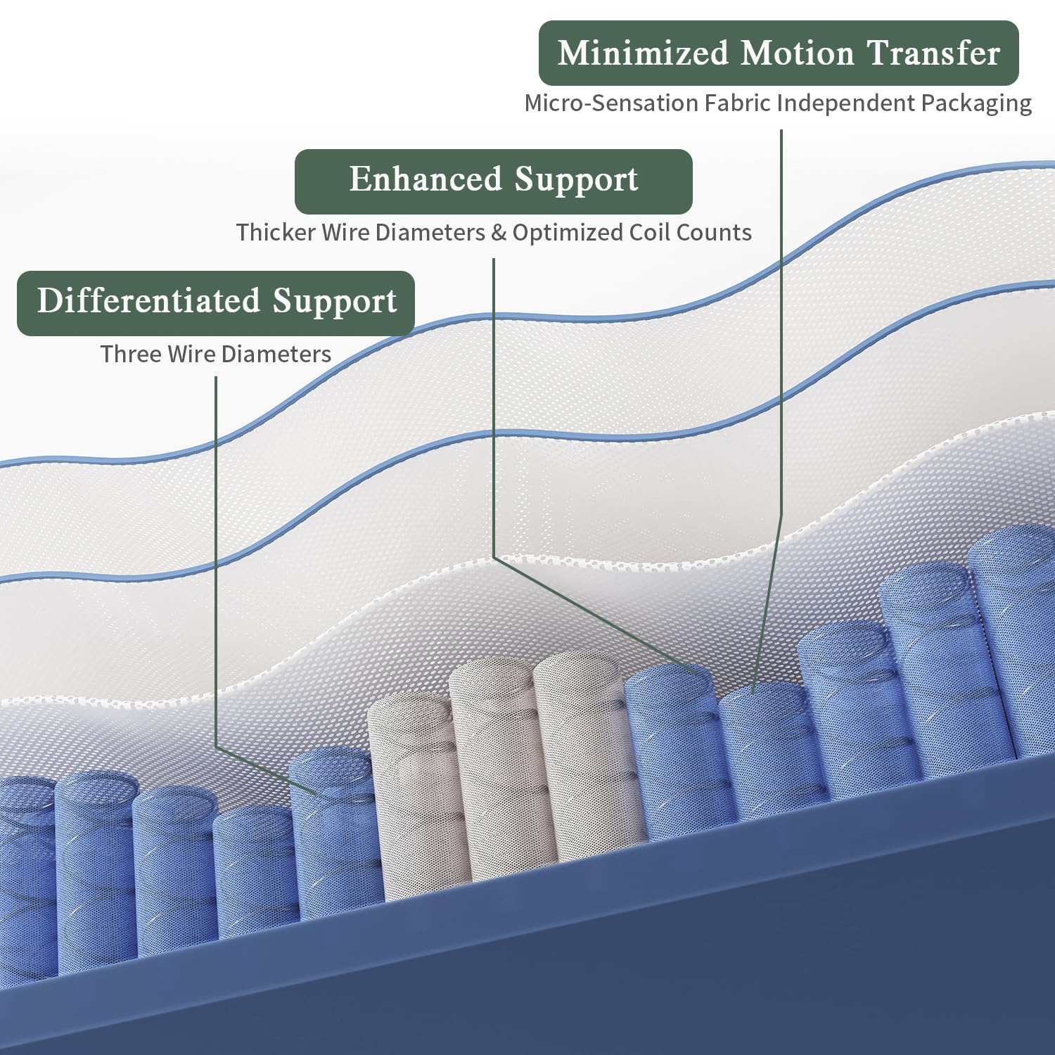 - Uninterrupted Sleep with Motion Isolation: Equipped with advanced motion isolation technology, our full size bed mattress reduces motion transfer, ensuring you and your partner enjoy undisturbed sleep. This feature is ideal for couples, as it minimizes disturbances from tossing and turning, allowing both partners to sleep soundly.