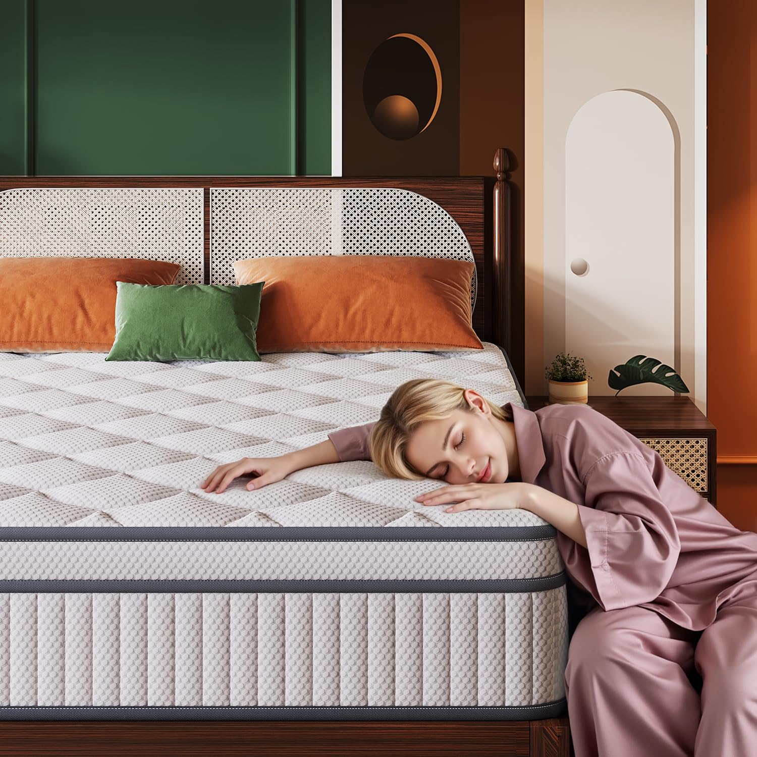 - Experience Superior Comfort and Support: Our full mattress features a unique blend of gel memory foam and individual innerspring coils, providing medium-firm support and exceptional pressure relief. This combination ensures optimal spinal alignment and comfort, making it perfect for a restful night's sleep. The memory foam conforms to your body's shape, offering personalized support for all sleeping positions.
