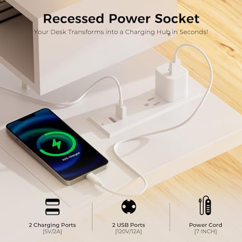 - Gaming Desk with Colorful LED Lights: This gaming desk features RGB LED lights with 12 scene modes and 5 adjustable brightness levels that can be switched cyclically. The adjustable standing desk also includes a built-in power strip with 2 AC outlets and 2 USB charging ports, making it convenient to charge your devices such as cell phones, tablets, and notebooks. This computer desk functionality for your gaming and work needs