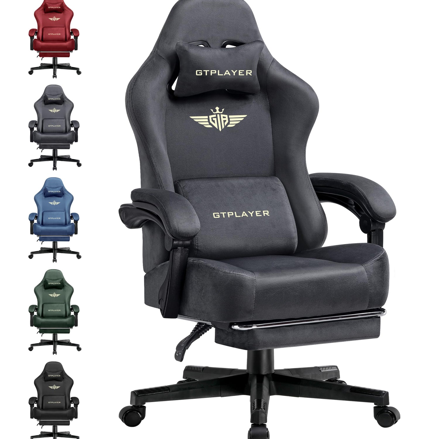 GTPLAYER Gaming Chair Fabric with Pocket Spring Cushion, Big and Tall Gaming Chair 350LBS High Back Computer Chair with Footrest for Adults Lumbar Support Swivel Game Chair for Office Gaming Gray