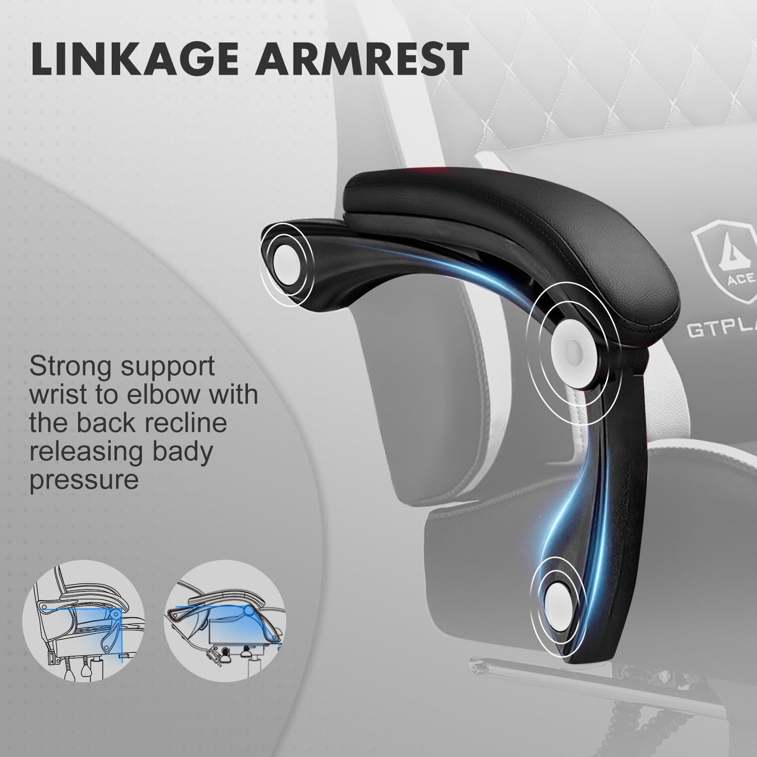 - 【Integrated Linkage Design】: The linkage armrest of our office chair is a major feature that can automatically adjust according to the backrest angle. Its appearance makes traditional complex adjustments simple, while avoiding elbow strains. The seamless tilt of 90°to 135° can perfectly synchronize with your body at any time. The innovative linkage armrest aims to reduce user discomfort and provide you with all-round support, making it easier for you to stay focused and relaxed during intense gaming.