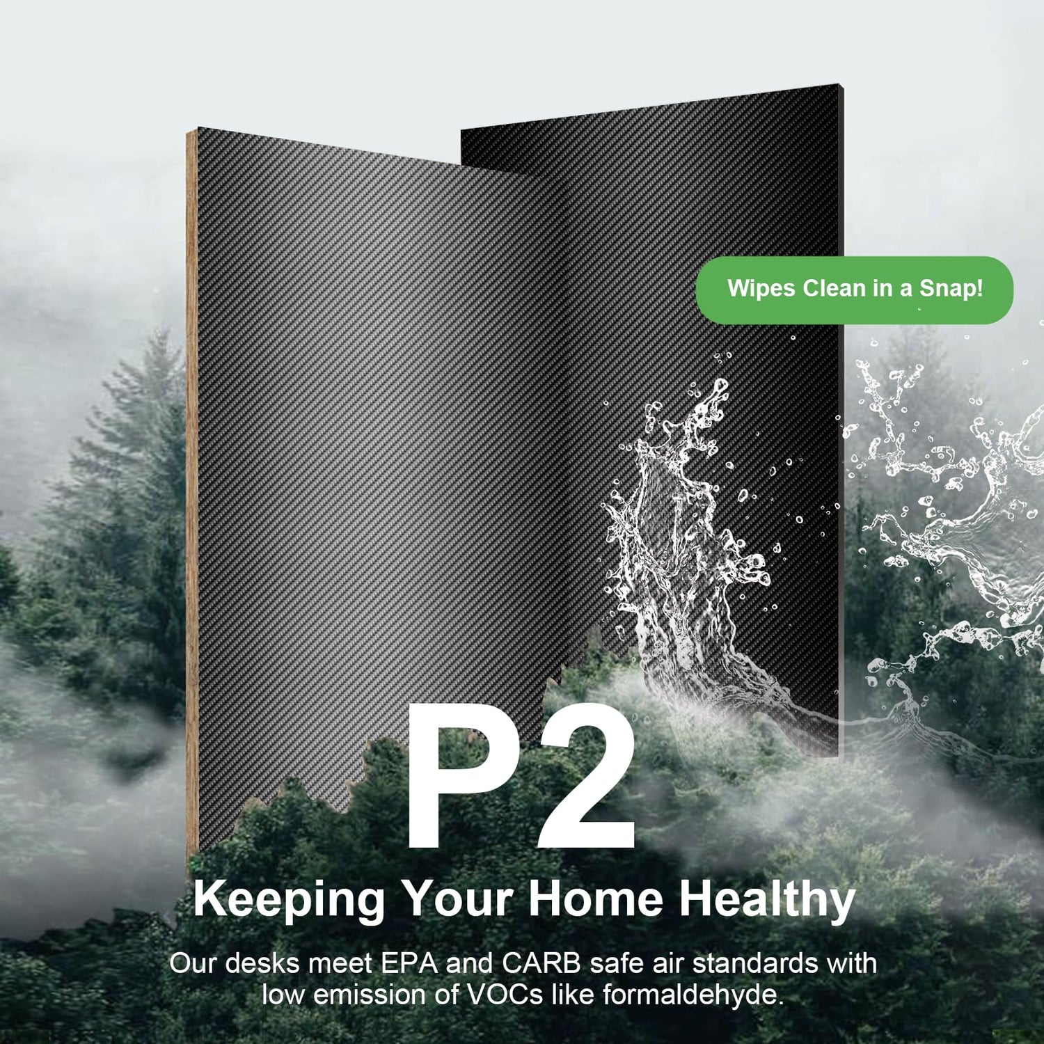 • 【Easy to Use Accessories】This gaming desk is equipped with not only an anti-slip mouse pad but also two headphone hooks and adjustable anti-slip footpads, making it incredibly user-friendly. The desktop is made from carbon fiber material, ensuring water resistance, anti-slip properties, and durability. Its geometric desktop curvature guarantees comfort during intense gaming sessions. The T-shaped reinforced legs have a robust weight capacity of up to 220LB.