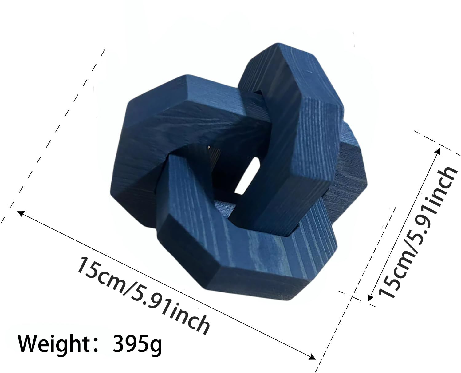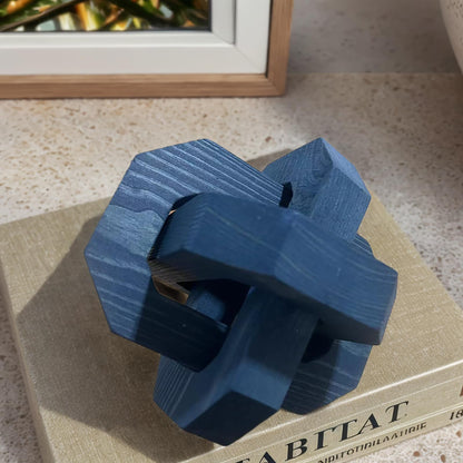GUDAGUU Coffee Table Decor -3 Link Wood Knot Decor Farmhouse Wood Chain Link Decor Shelf Decor Table Books Hand Carved Artistic Home Decoration for Modern Boho Shabby Homestay (Navy Blue)