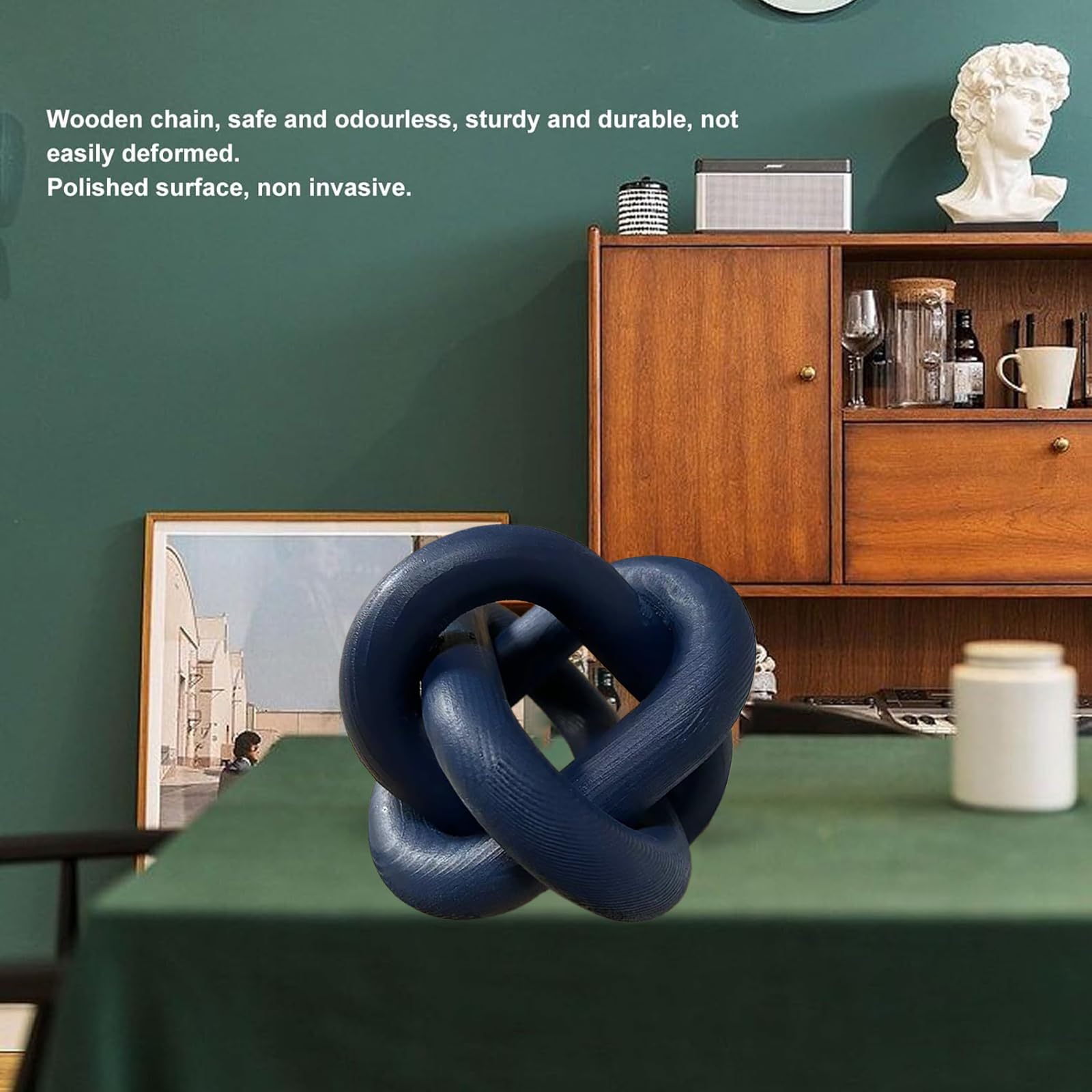 GUDAGUU Wood Knot Decor -Coffee Table Decor Shelf Decor Table Books Hand Carved Home Decoration Boho Country Rustic Modern Shabby Chic Style Decor 3 Link Wooden Knot Chain Link Decor (Navy Blue)