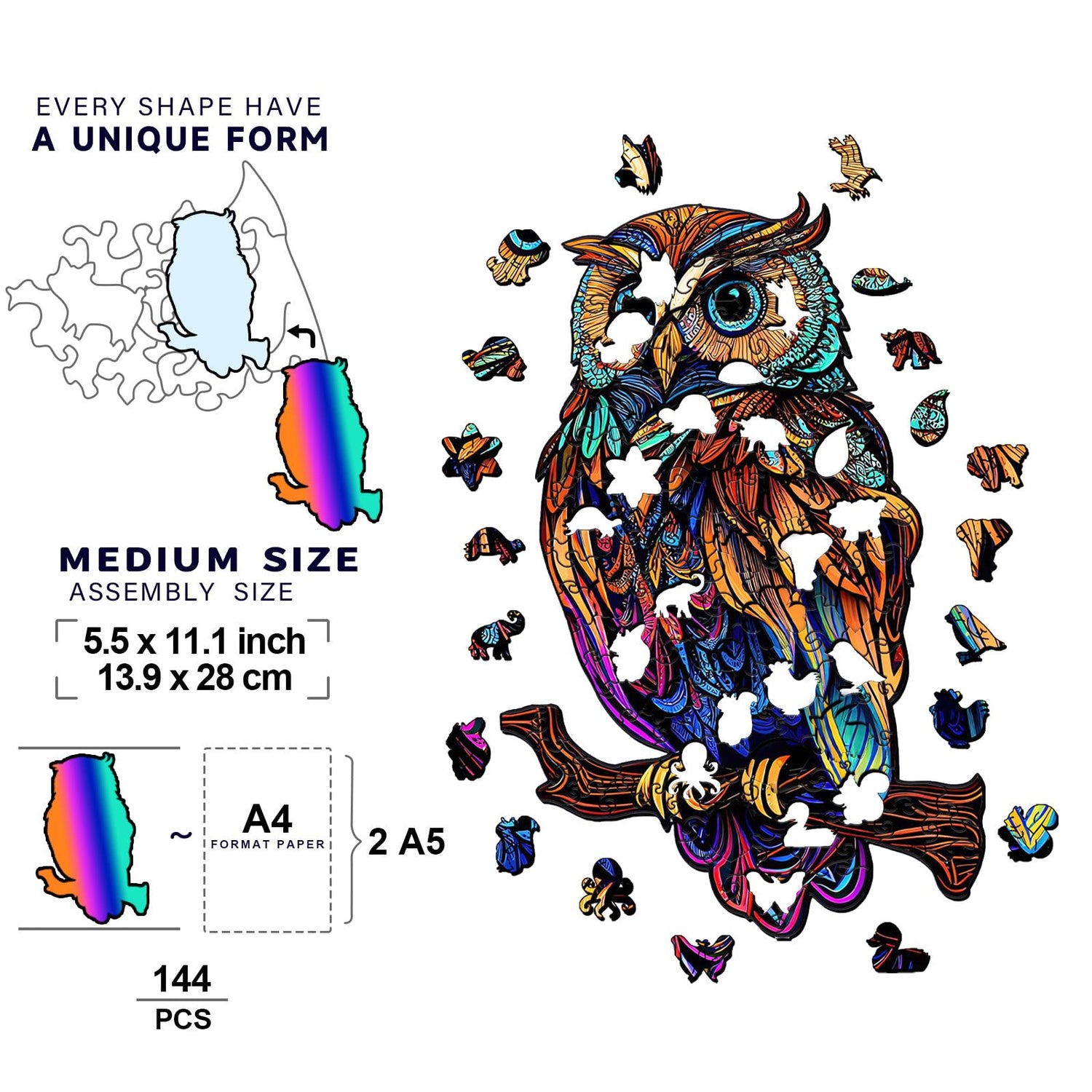 GuDoQi Wooden Puzzles for Adults, Owl Puzzle - Unique Shape Animal Wood Puzzle, Fun Challenging Wooden Jigsaw Puzzles Gifts, Perfect Family Game (8.3 x 11.7 inch, 144 Pieces)