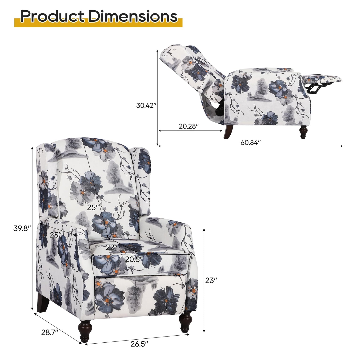 - 【Wingback recliner chair】: This classic Mid Century Modern recliner chair has an elegant pattern design and an upholstered backrest. Polyester fabric upholstery with optional fancy patterns and colors set off a modern and chic style of decoration.It is comfortable and stylish, and will add a touch of elegance to any space. Recommended Height: 5'1"-5'9''.