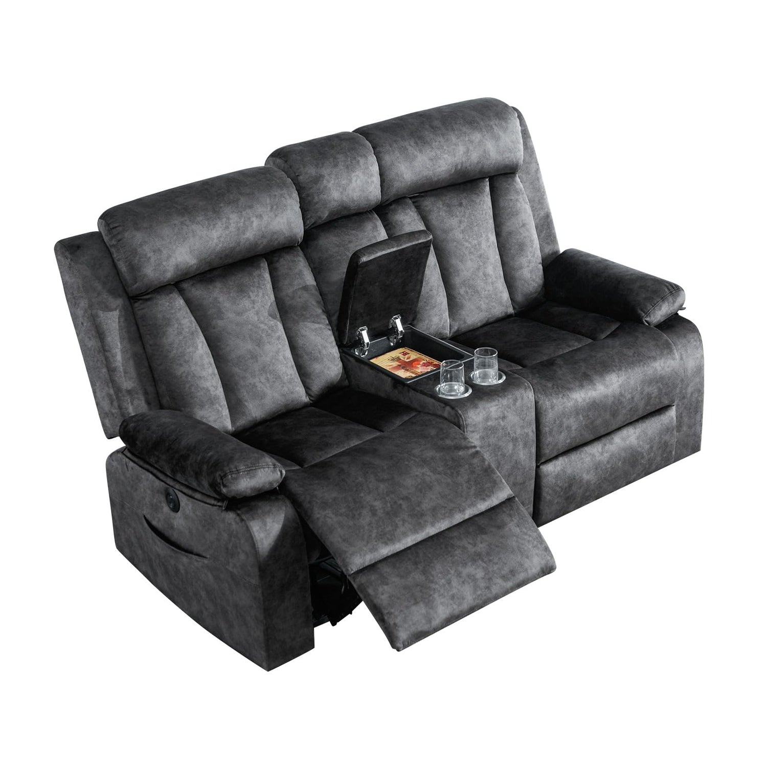 - Multi-Functional Design: Equipped with USB and Type-C dual interfaces, our reclining loveseat allows you to conveniently charge your devices while lounging. Featuring convenient side pockets and cup holders, our reclining loveseat ensures that your essentials are always within reach.This sophisticated dual-seater sofa is designed to enhance your relaxation experience while providing unmatched comfort and functionality.