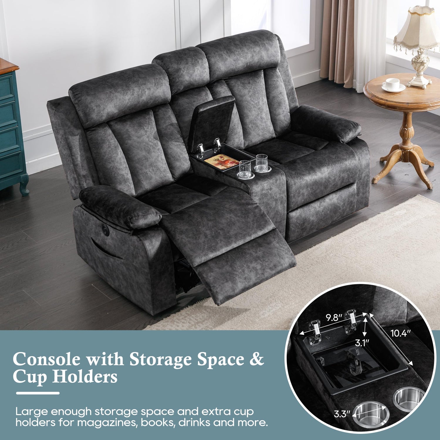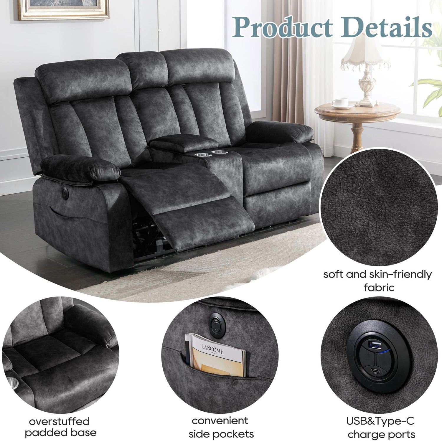 GUEAPY Reclining Loveseat-Power Reclining Loveseat with Console,Double Recliner Loveseat with Heat and Massage,Electric Loveseat Recliner with Cup Holders,USB & Type-C Charge Ports for Living Room,RV