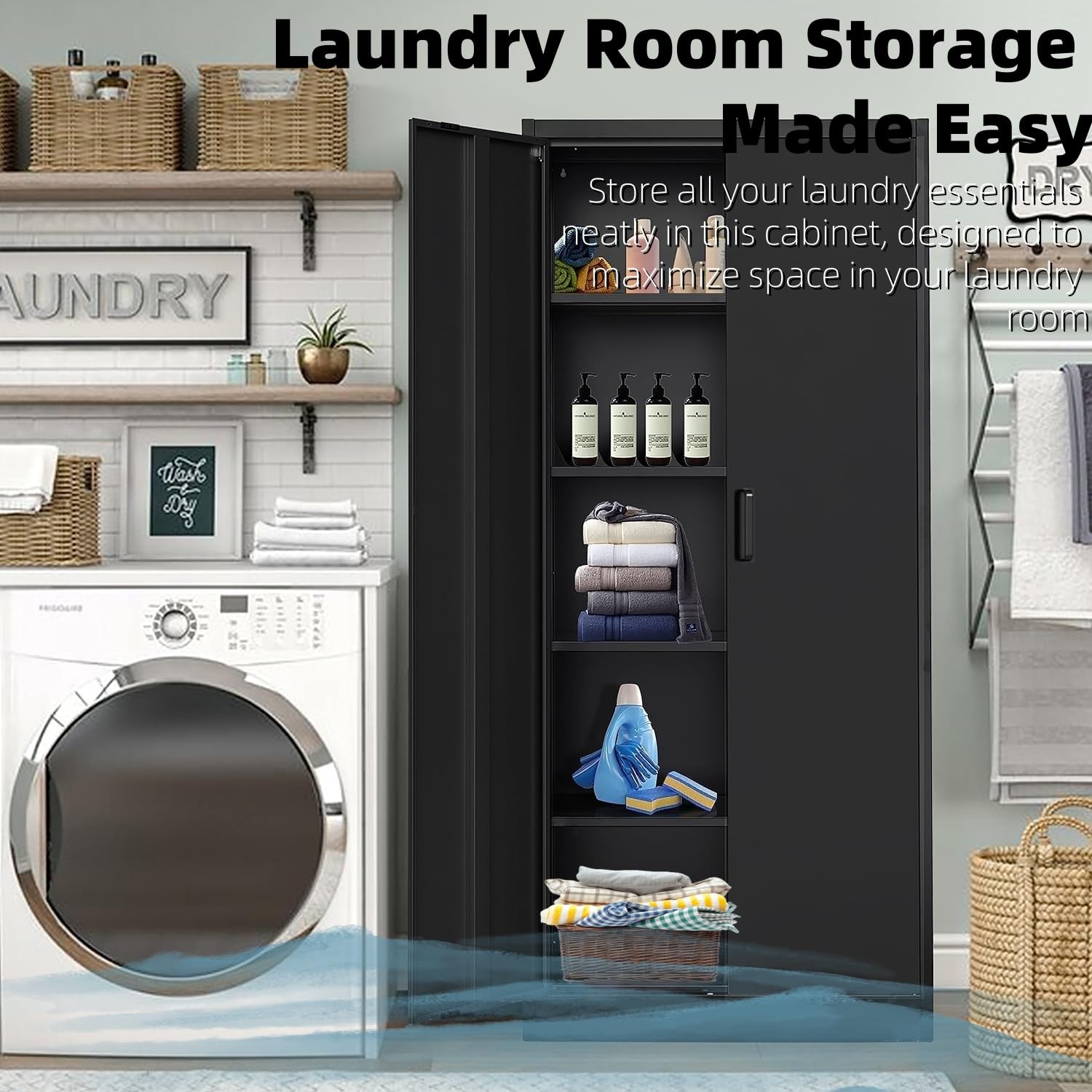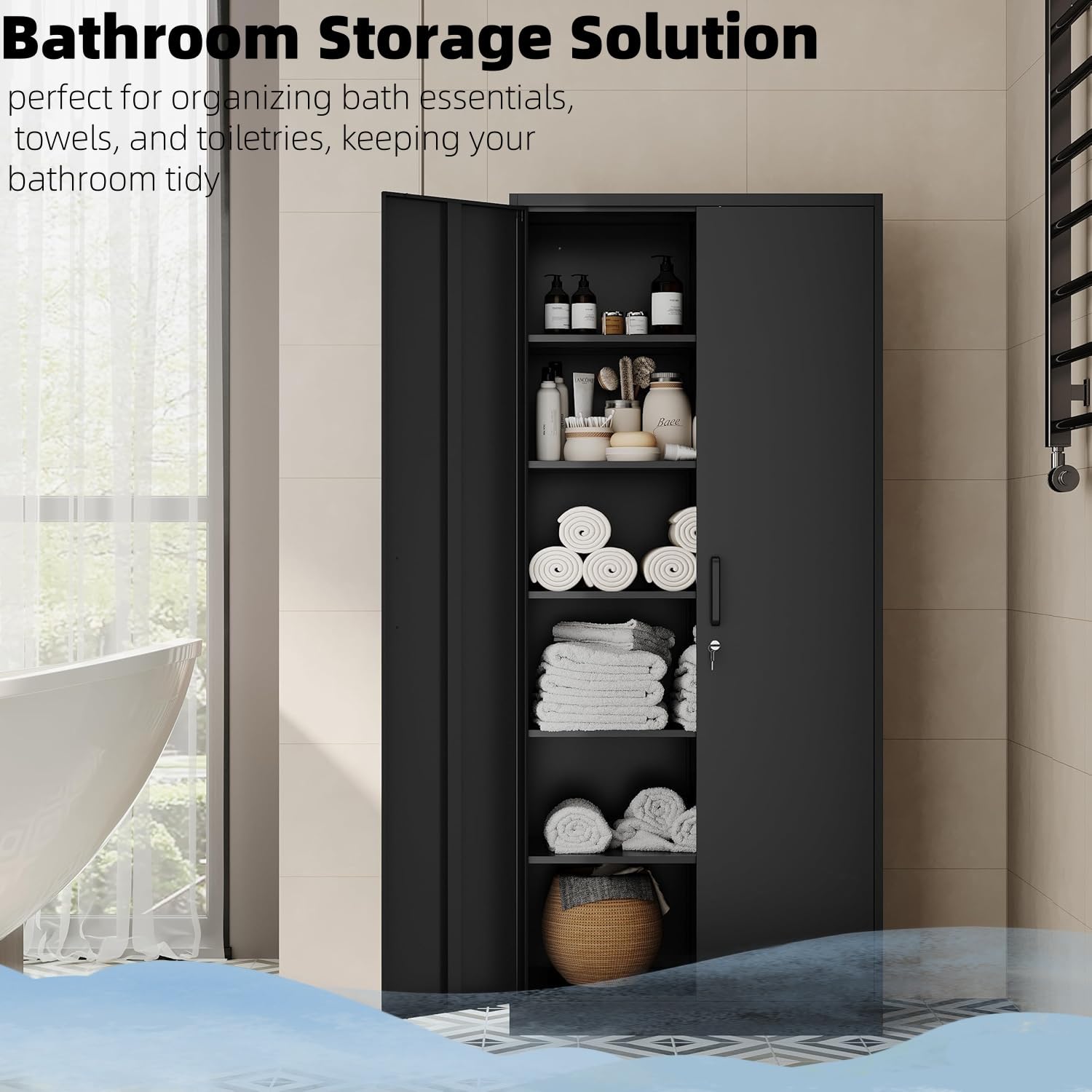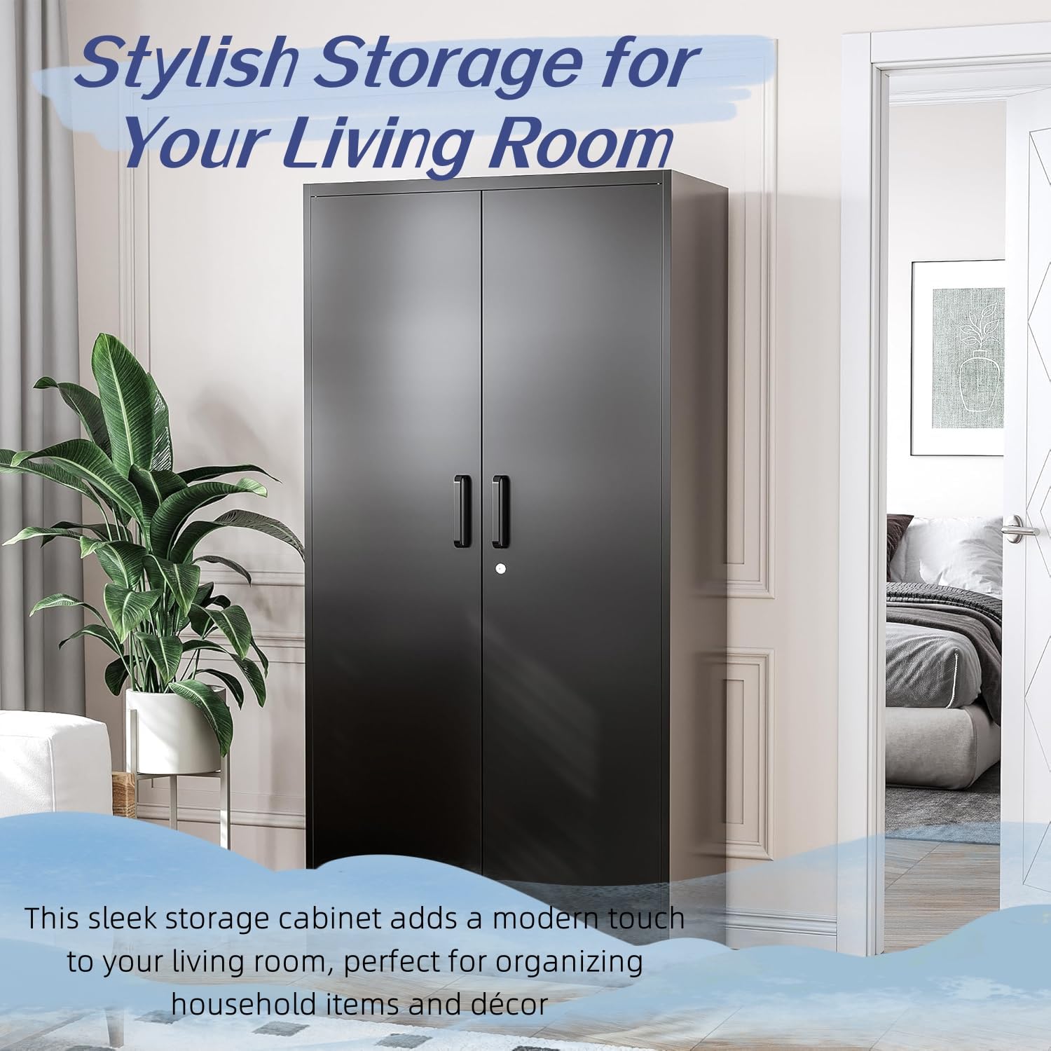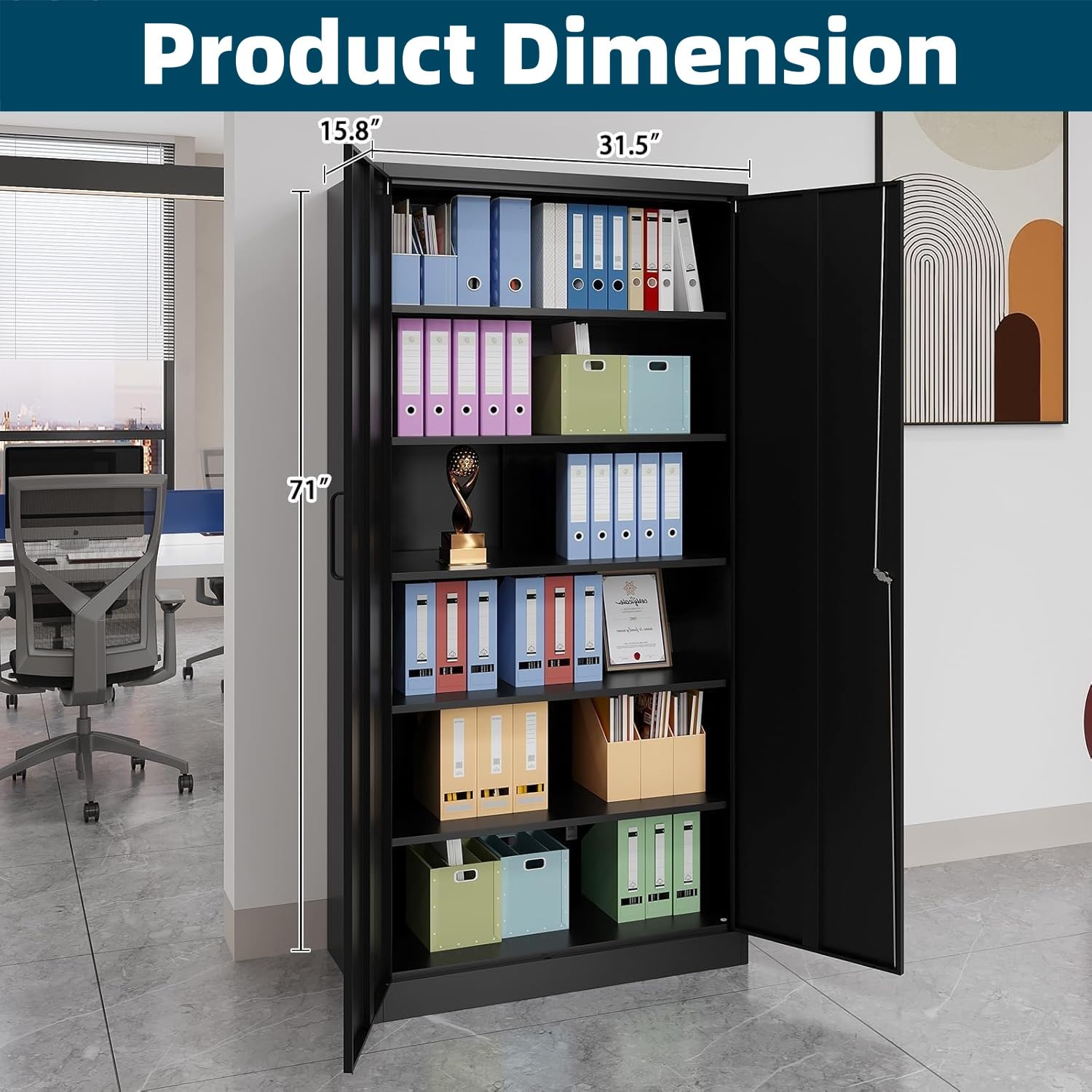 Guizeeopo Metal Storage Cabinet with 5 Adjustable Shelves, Garage Storage Cabinet with Doors and Shelves, File Cabinets for Home Office, Kitchen Pantry Cabinet, 71'H, Black