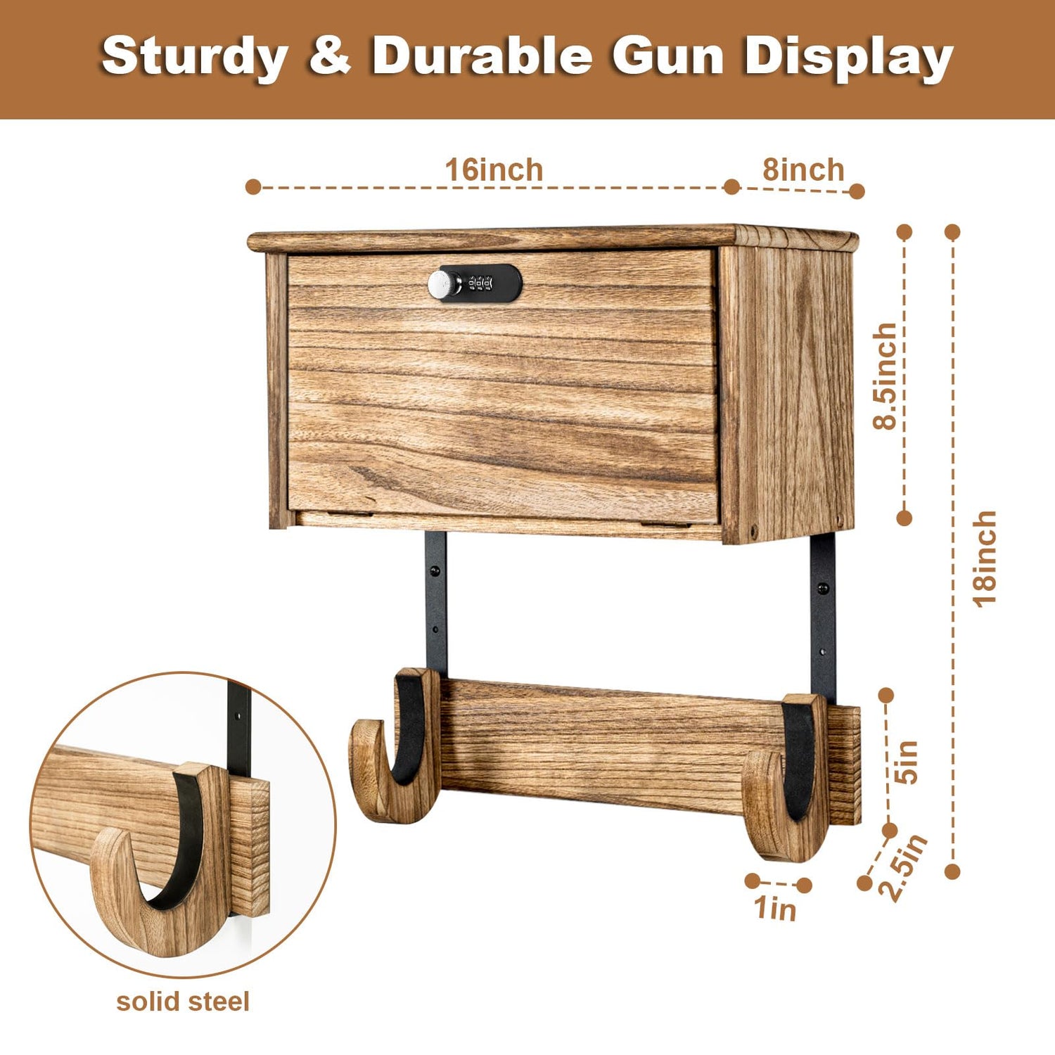 - 【Practical and Accessible】Our wall-mounted gun rack is made from solid wood and is built to last! And it's padded too! That way, you can be sure your firearm stays in tip-top shape. Quick access to your firearm with combination lock.