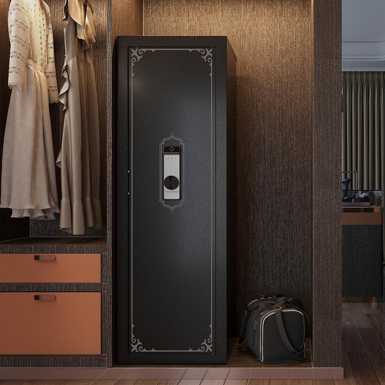 - [ Triple-Access Security at Your Fingertips ]: Equipped with a multi-function electronic lock, this gun safe offers three fail-safe entry methods: lightning-fast fingerprint recognition, customizable digital PIN codes, and a traditional backup key. Whether you prioritize speed for emergency access or prefer layered security, this system adapts to your lifestyle while keeping unauthorized users out. Rest easy knowing your firearms and valuables are protected by cutting-edge technology.