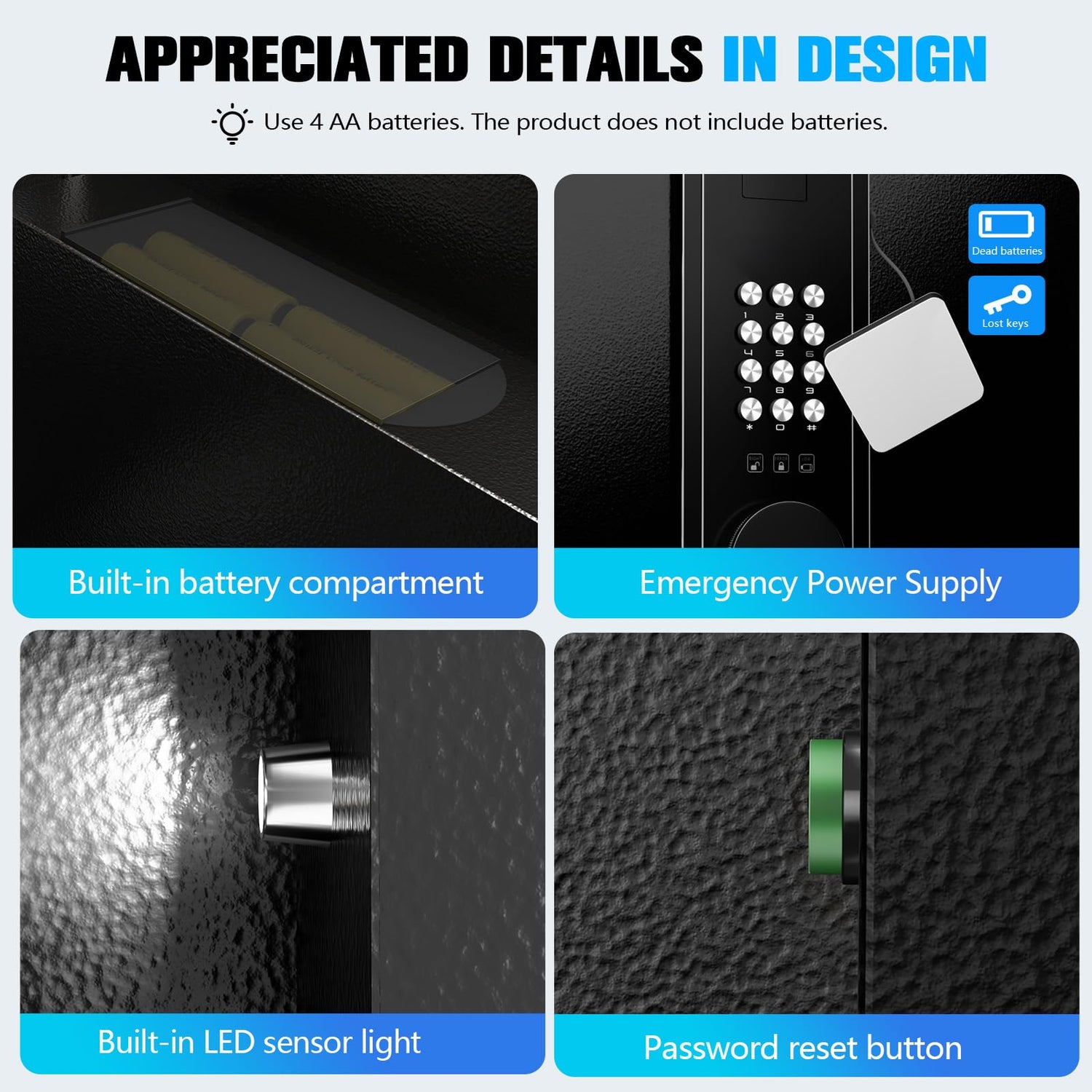 - 3 Ways of Access: Our safe is perfect for use as a cash box or handgun safe. It can be set with a 3 to 8 digit code, offering over 100 million possible combinations. It also comes with 2 keys for initial access and to prevent being locked out if the code is forgotten. Additionally, an emergency power supply is included to ensure access in case of battery failure or lost keys. (Please don't keep the keys and emergency power in the safe box.)