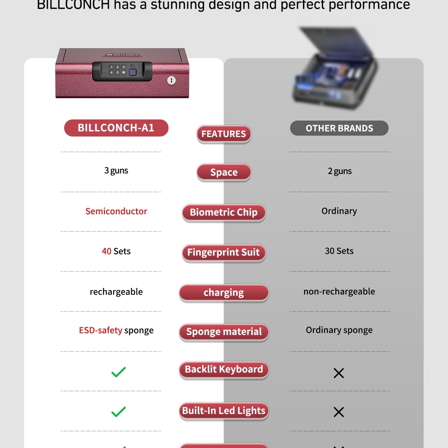 Details: BILLCONCH is committed to providing you with greater peace of mind and a safer gun safe! We adhere to the principle of user first! We want all firearms to be stored in the correct manner and do not want to see any accidents caused by improperly stored guns. Since the release of our product, we have been collecting feedback from our users and constantly improving our product, so you don't have to worry about your guns and keep them safe!