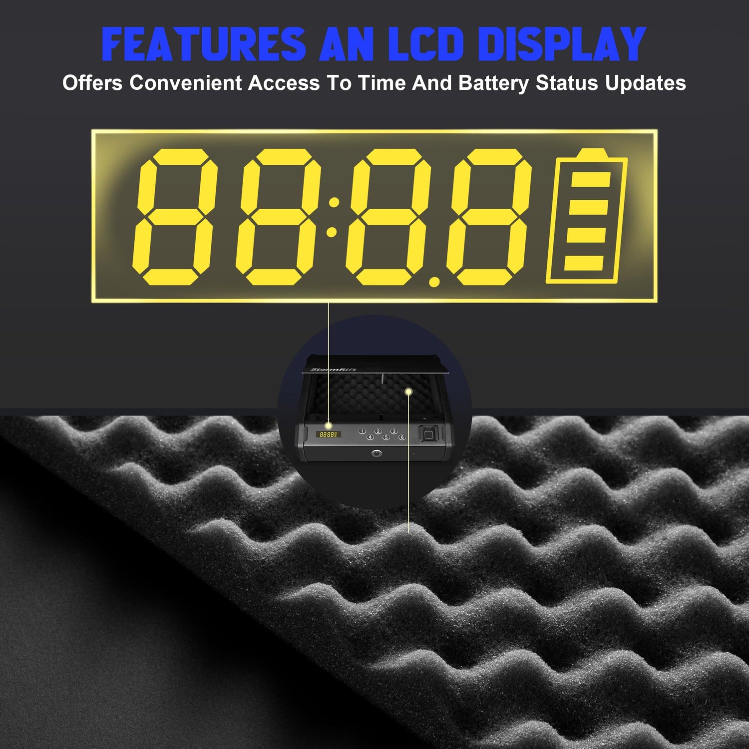- Durable Construction & Practical Interior: Built with reinforced carbon steel and a thick metal coating, this biometric gun safe for handgun is designed to withstand external damage. The interior includes built-in lighting for clear visibility in low-light situations, allowing you to easily access your items even at night