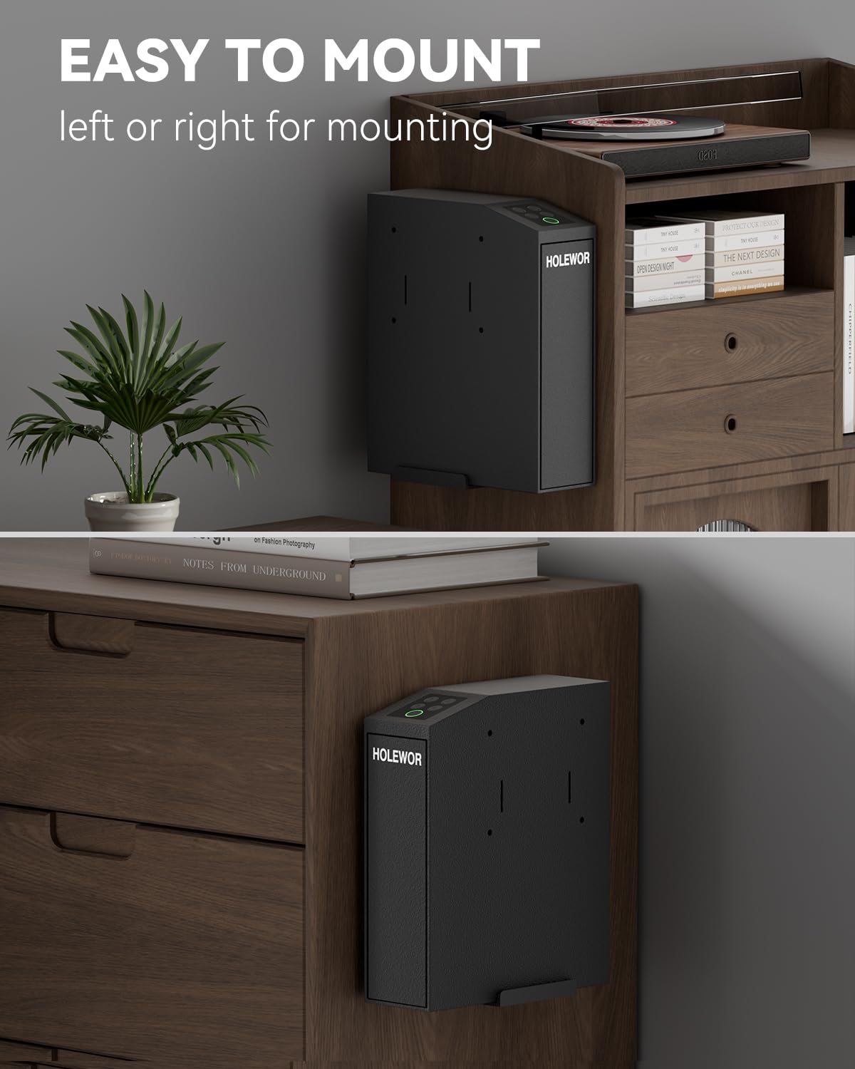 - Easy to Mount: The mounting bracket can be utilized left or right for vertical mounting, easy to install. This nightstand gun safe is great to mount to a bed, nightstand, dresser, cabinet, wall or any other side mount location.
