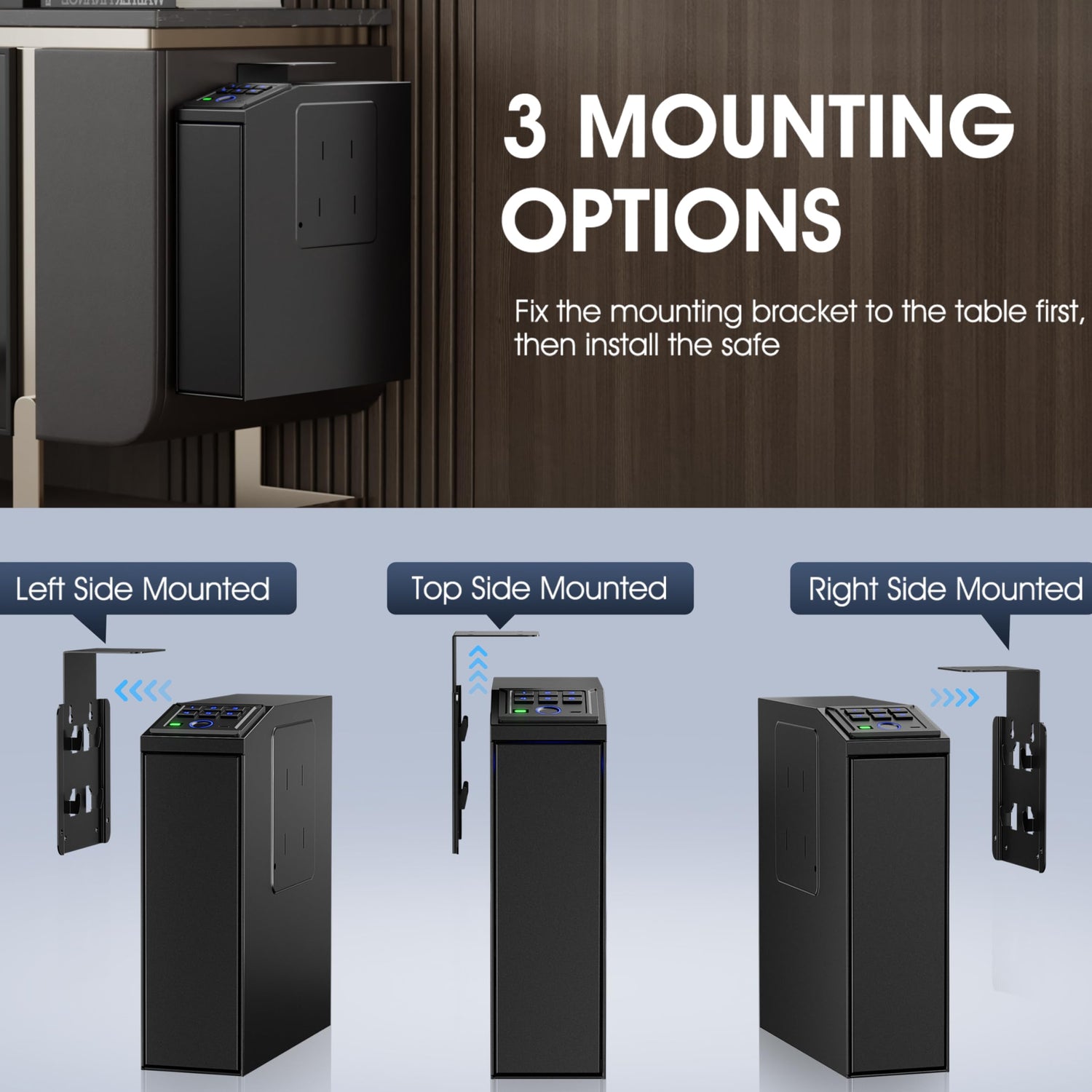 - 【Space-Saving Vertical Design】The versatile left/right/up mounting plate allows for discreet installation under desks, beside beds, or on nightstands. Its slim vertical profile keeps your firearm upright for quick access, blending effortlessly into your space
