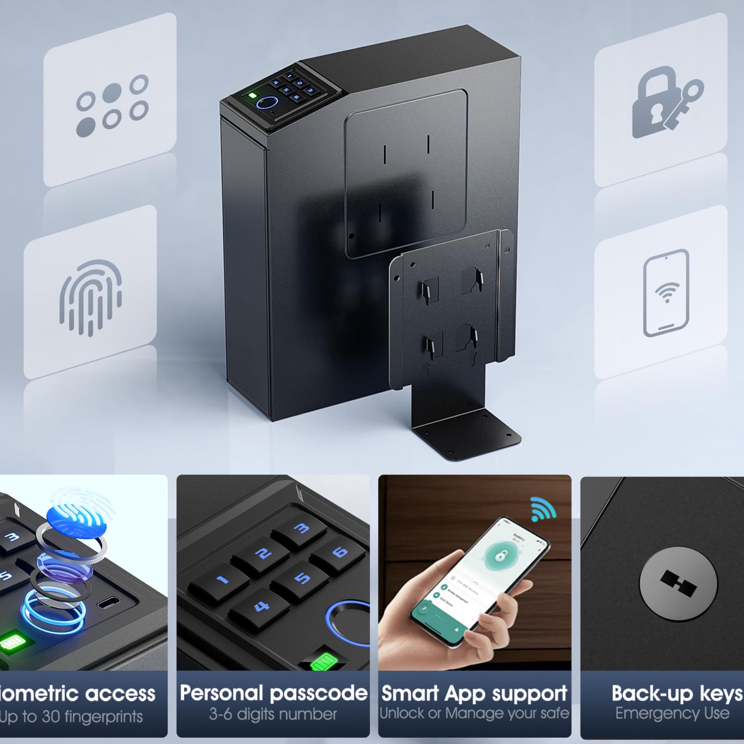 - 【Whisper-Quiet Entry & Auto-Illuminated Interior】Enable Silent Mode for discreet access, and enjoy the built-in LED light that illuminates the interior for easy visibility in complete darkness