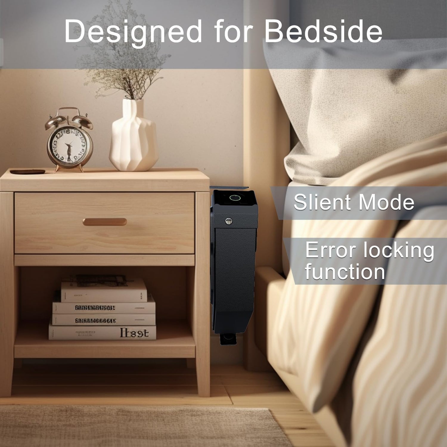 Gun Safe for Handgun Biometric Bedside Pistol Safe for Nightstand Fingerprint Drop Down Single Gun Safe Night Stand Desk Vehicle Mounted, Finger Print